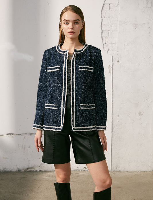 Classic round neck pocket jacket version, right-angle shoulder version, special small hole denim fabric, combined...