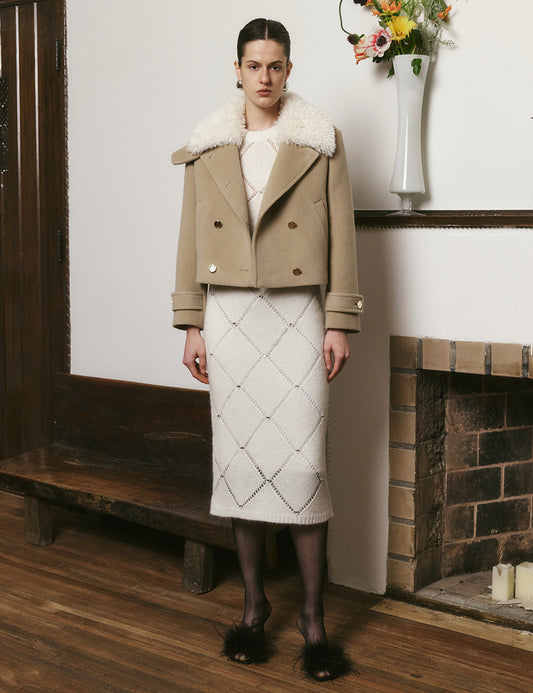 Bomber-style double-breasted cropped jacket with a loose, short-shouldered fit, made of linen and wool blend...