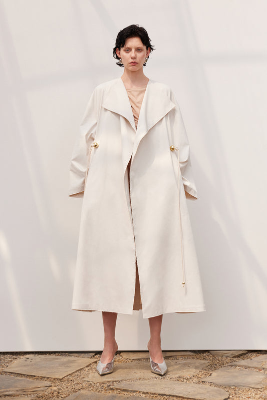 Loose cape trench coat with classic black and white plaid. The product combines the design...