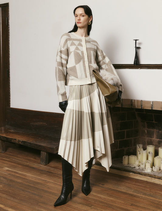 Yak khaki geometric check knitted cardigan