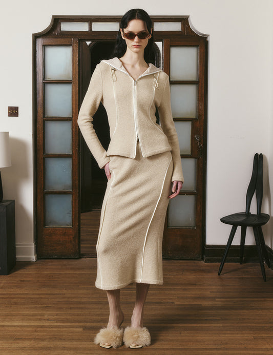 Product Description: The skirt is made of soft cashmere, and the contrast hem adds a...