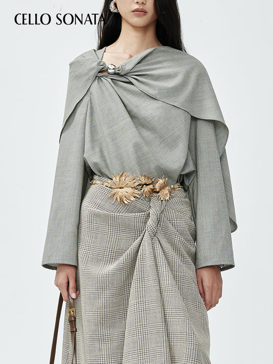 Fine Check Metal Bead Twisted Shawl Top