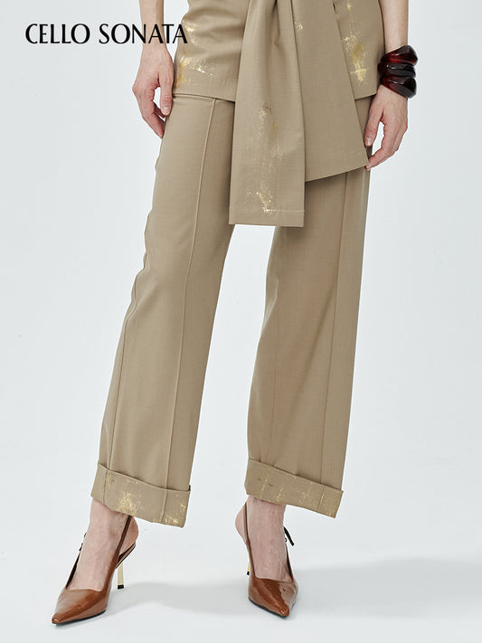 Gold-foiled Straight Wool Suit Trousers