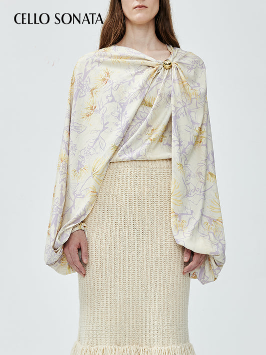 Irregular Printed Gold Bead Shawl Top