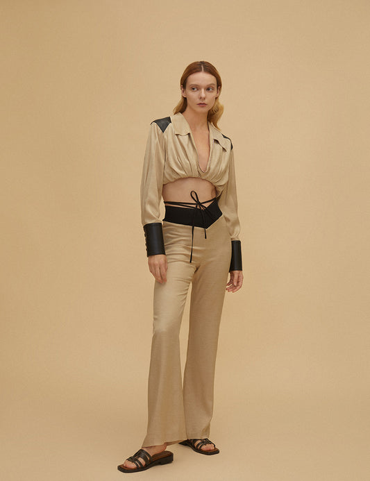 The leather waist section uses interspersed elements very cleverly, innovating the waist structure, giving people...