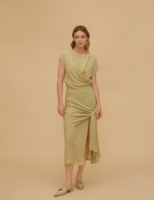 Using high-quality linen blend knitting, the texture is dry. The A-line short version avoids the...