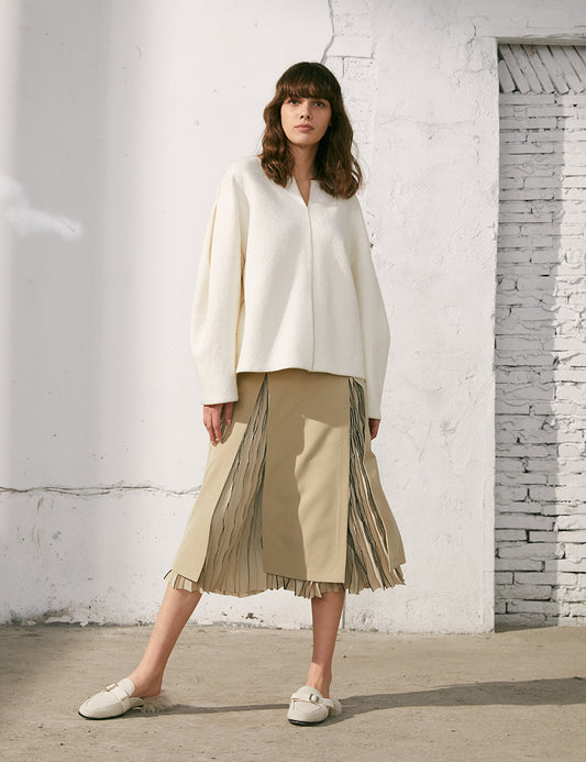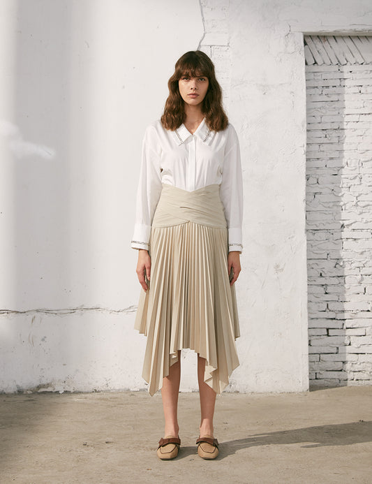 The high-waist pleated design lengthens the waist curve, and the irregularly pleated hem adds a...