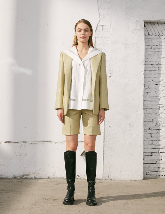 The leather high-waisted trousers have special sewing details, the straight version is very handsome, thin...
