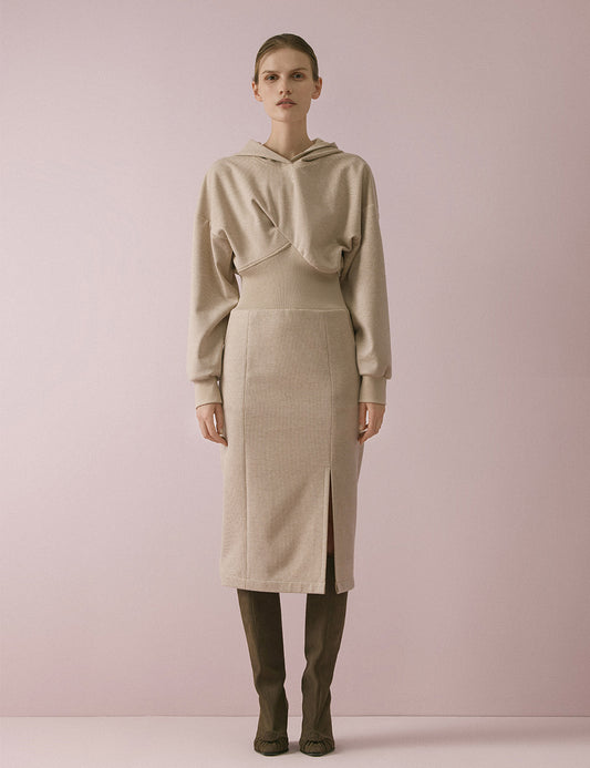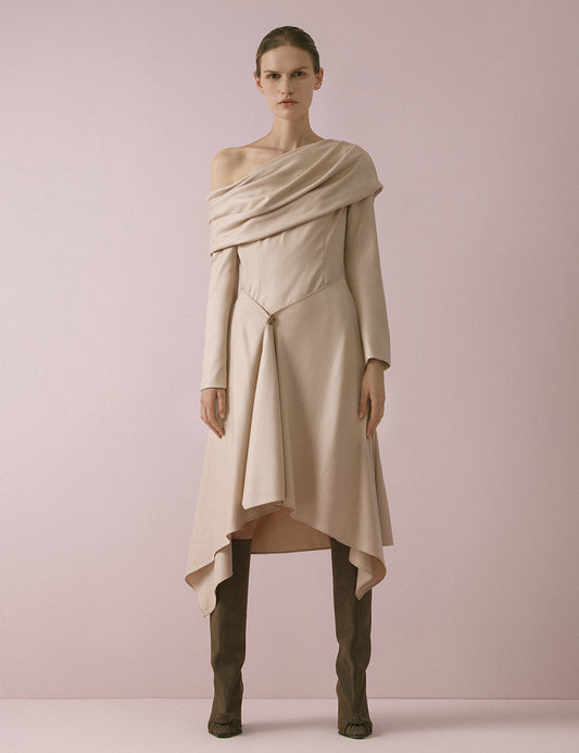 Made of nude pink delicate and soft silk woolen material, irregular hem, combined with an...