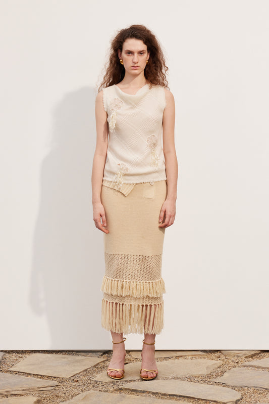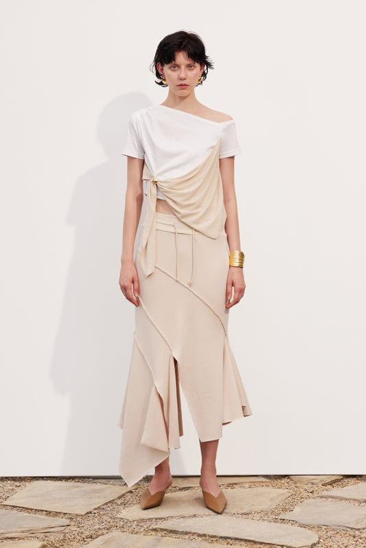 Raw-edge patchwork sweater skirt