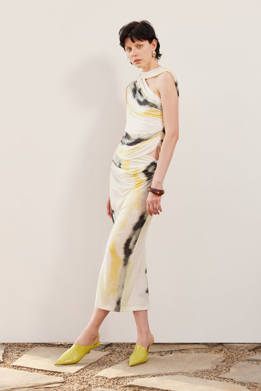 Printed Pleated Knitted Dress