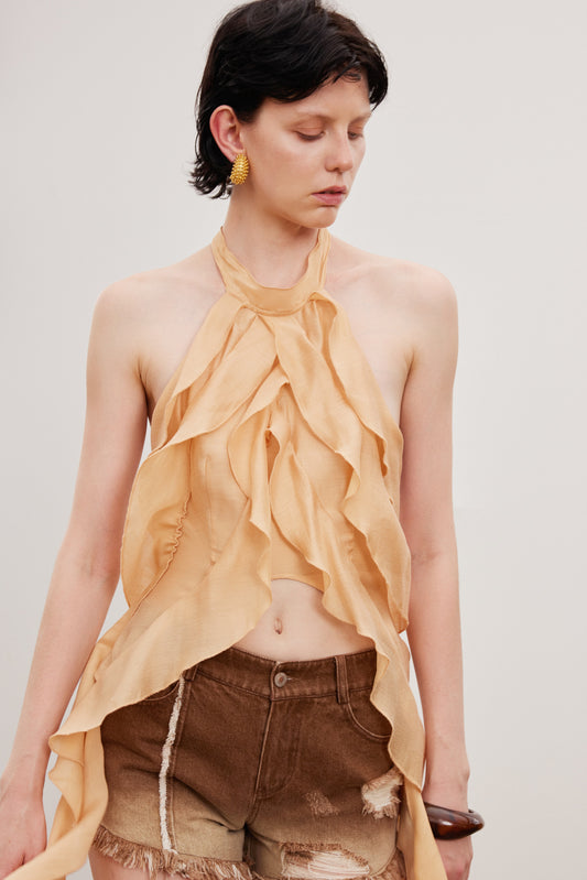 Product Description: Made of bony and shiny Tencel fabric, the ruffled body is flowing and...