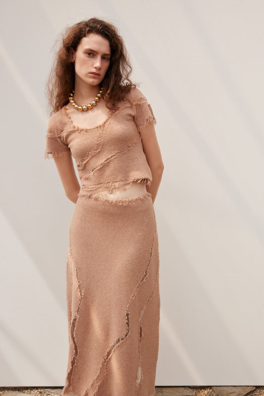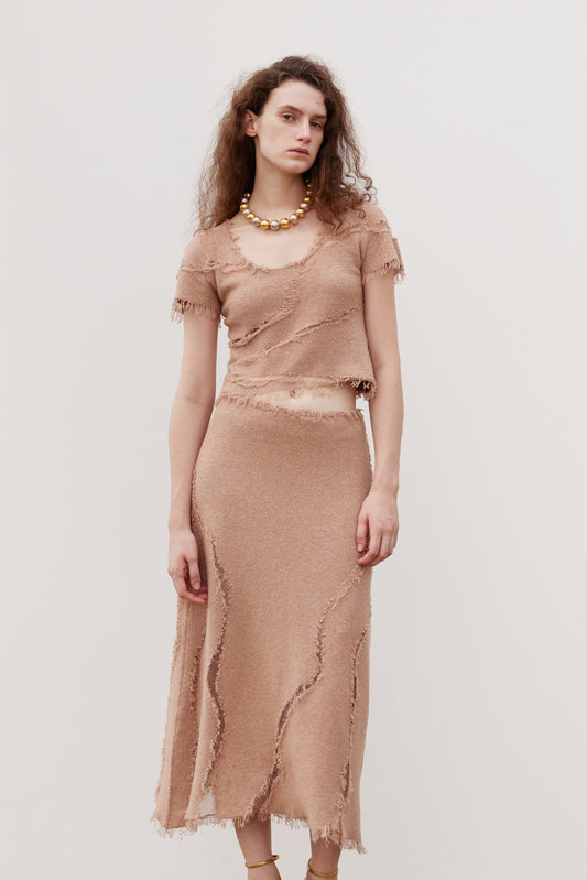 Irregular hollow knitted skirt