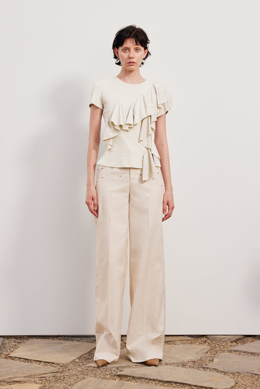 White irregular ruffled T-shirt没价格