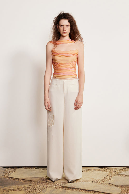 Printed silk halter neck ribbon top