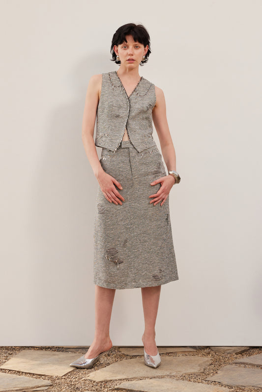 Product description:Using metal fiber blended fabric, unique style. The surface of the fabric is hand-worn,...