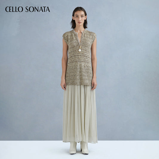 The skirt features soft, natural, and skin-friendly fabric. The dress combines a sleek V-neck knitted...