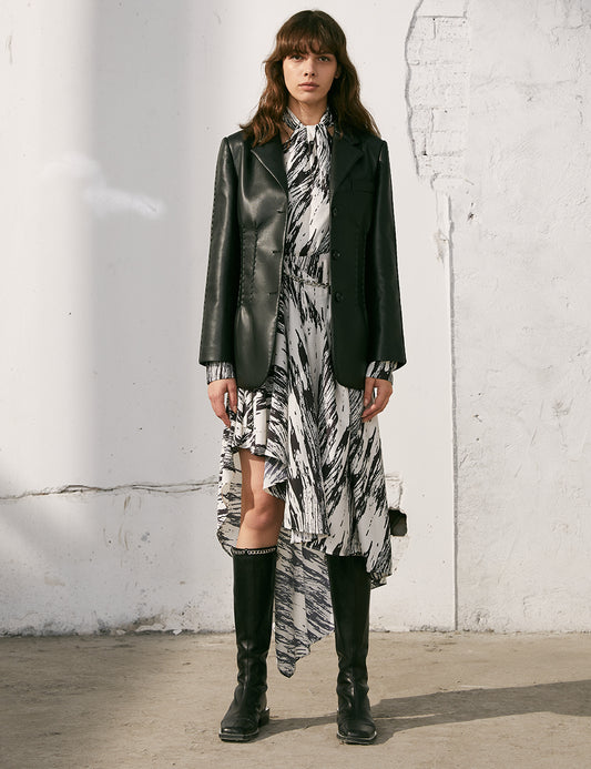 Loose leather suit version, special waist pinching process, so that the loose waist has a...