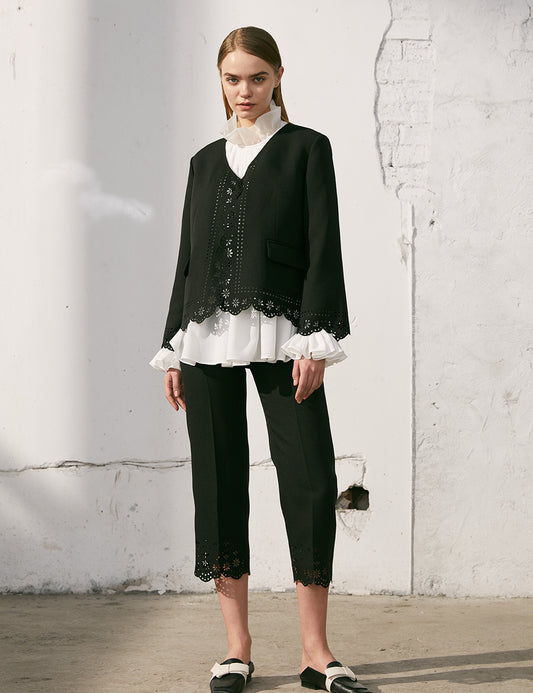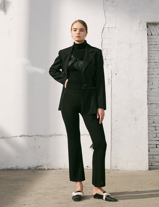 The black waisted loose suit is made of black 100% wool. The loose version is...