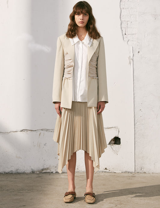Irregular Placket Frayed Stitching Leather Blazer