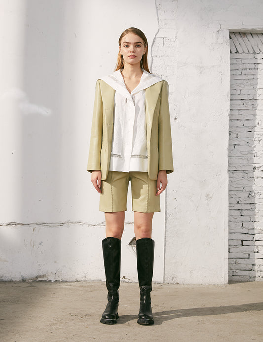 Stitched Leather Blazer