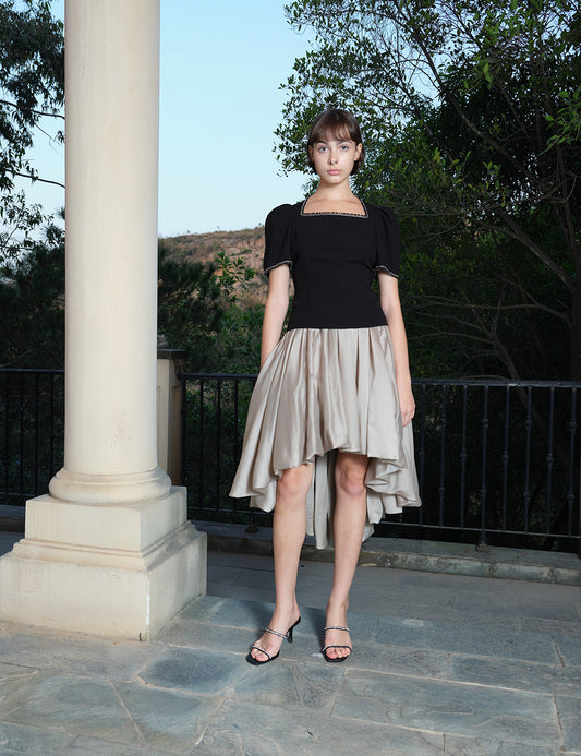 Fine diamond ribbon decoration. FABRICS&CARE 96% polyester4% spandex We recommend you to use professional dry-cleaning to take...