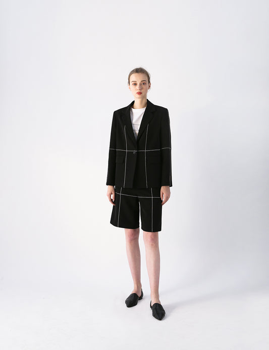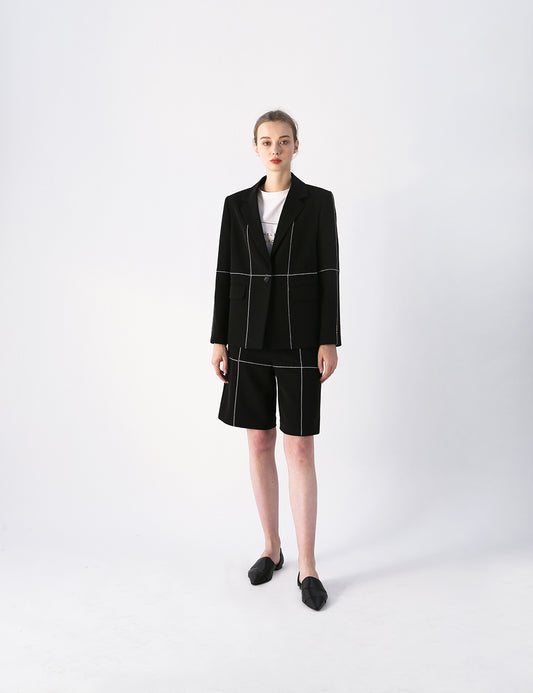 Adopts classic black and white plaid worsted wool blended suiting fabric, which has the lightness...