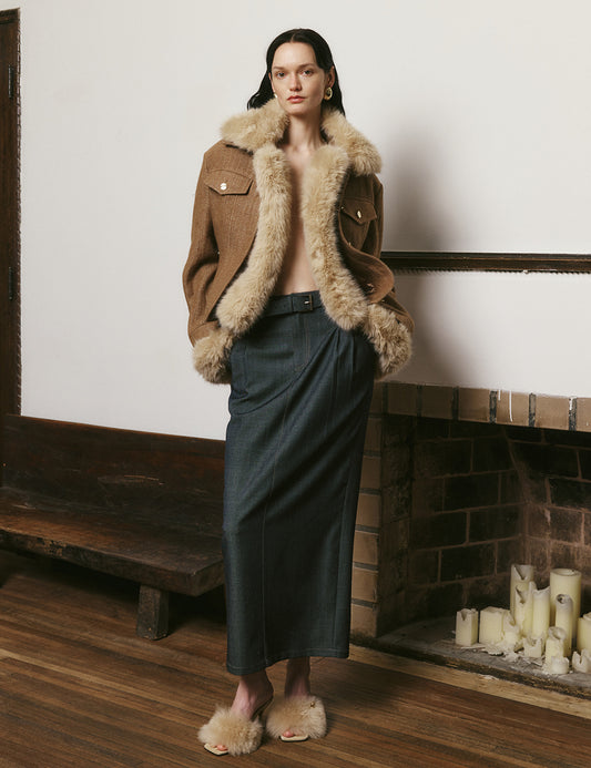 Product Description: Made of imitation denim wool blended fabric, it has a strong texture and...