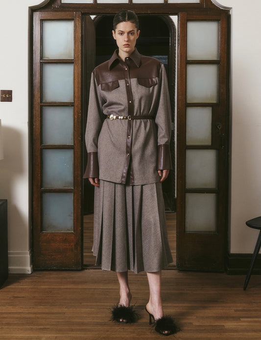 Product Description: The skirt is made of 100% wool material, which is comfortable and warm....