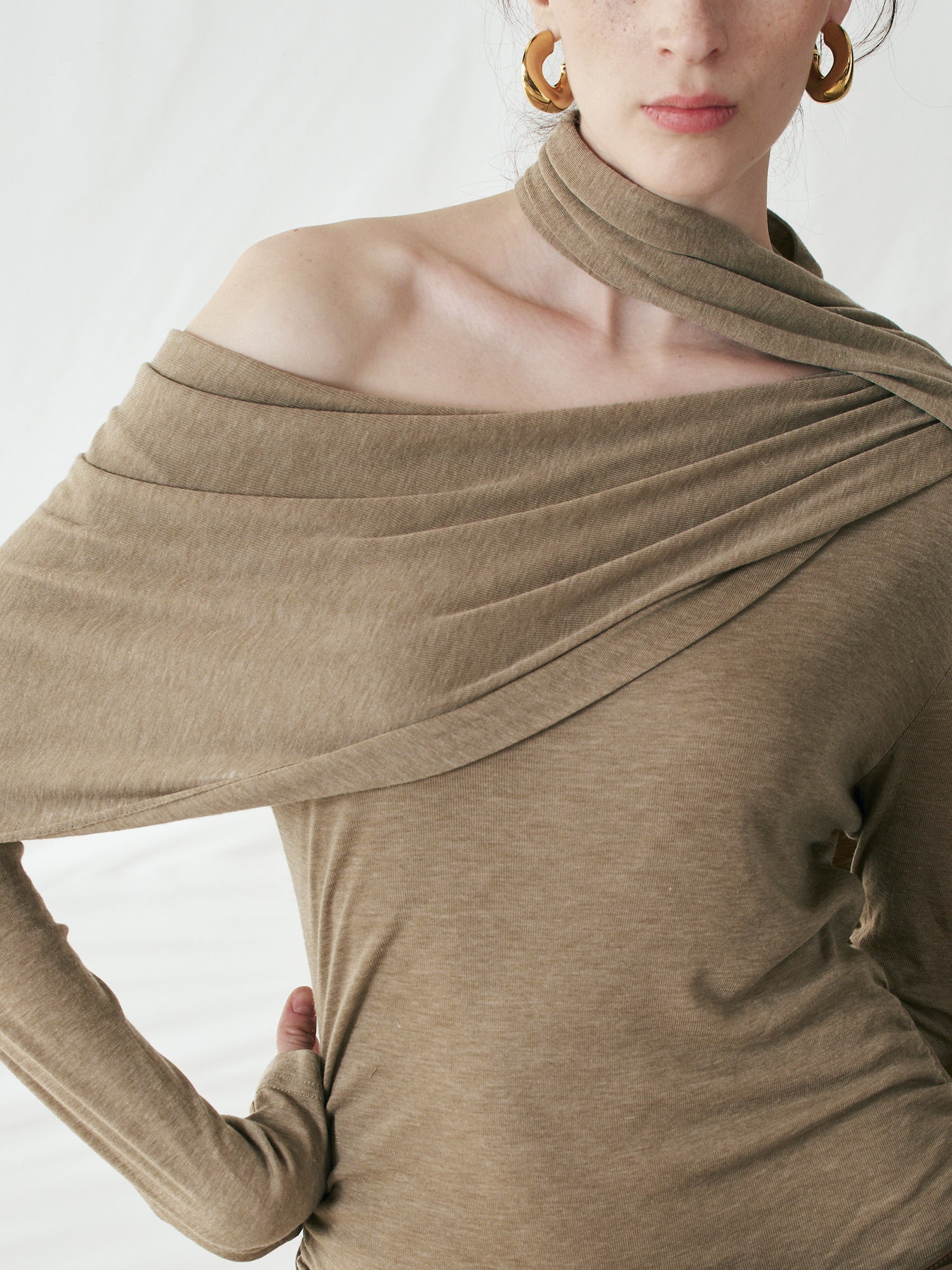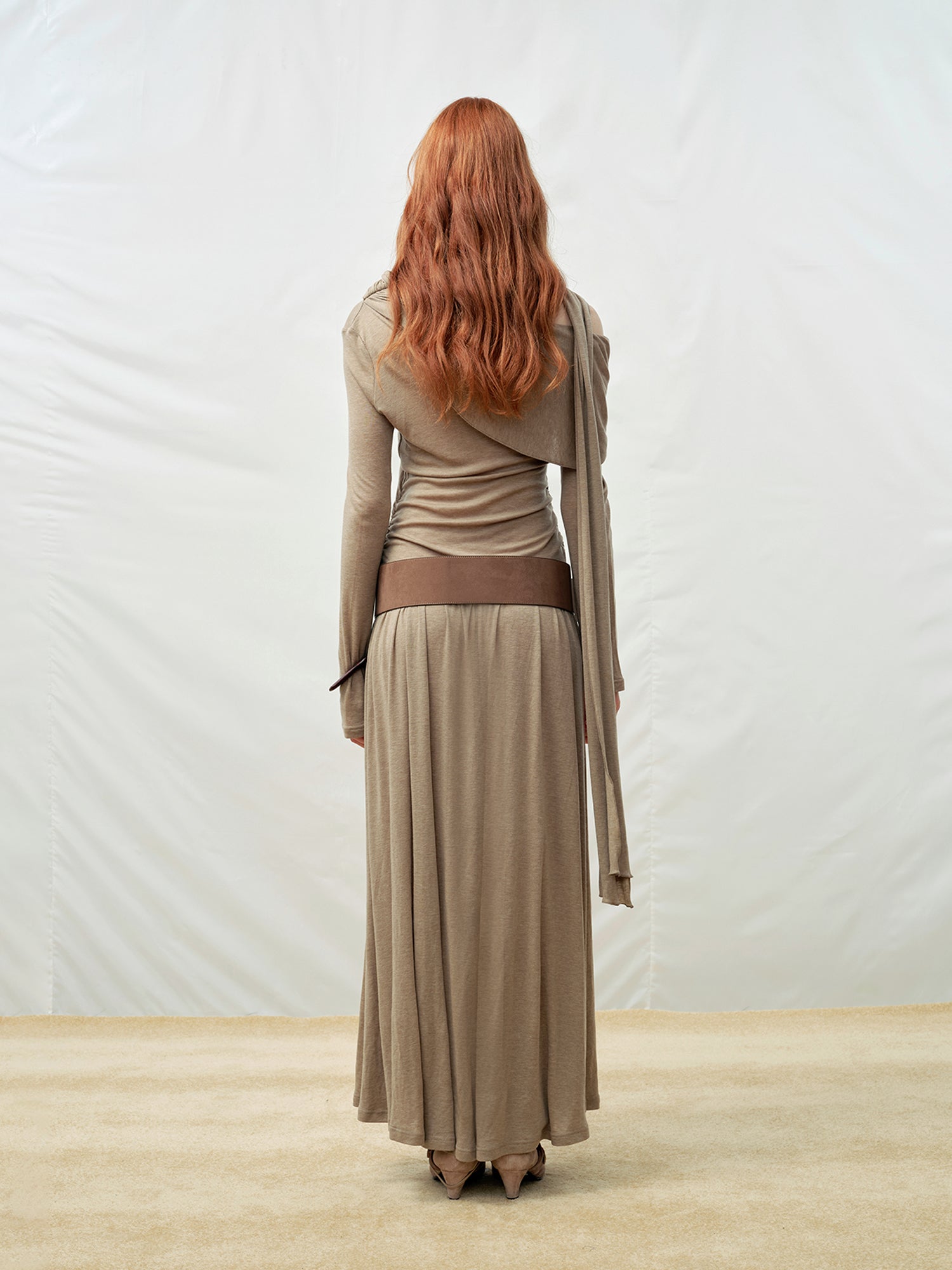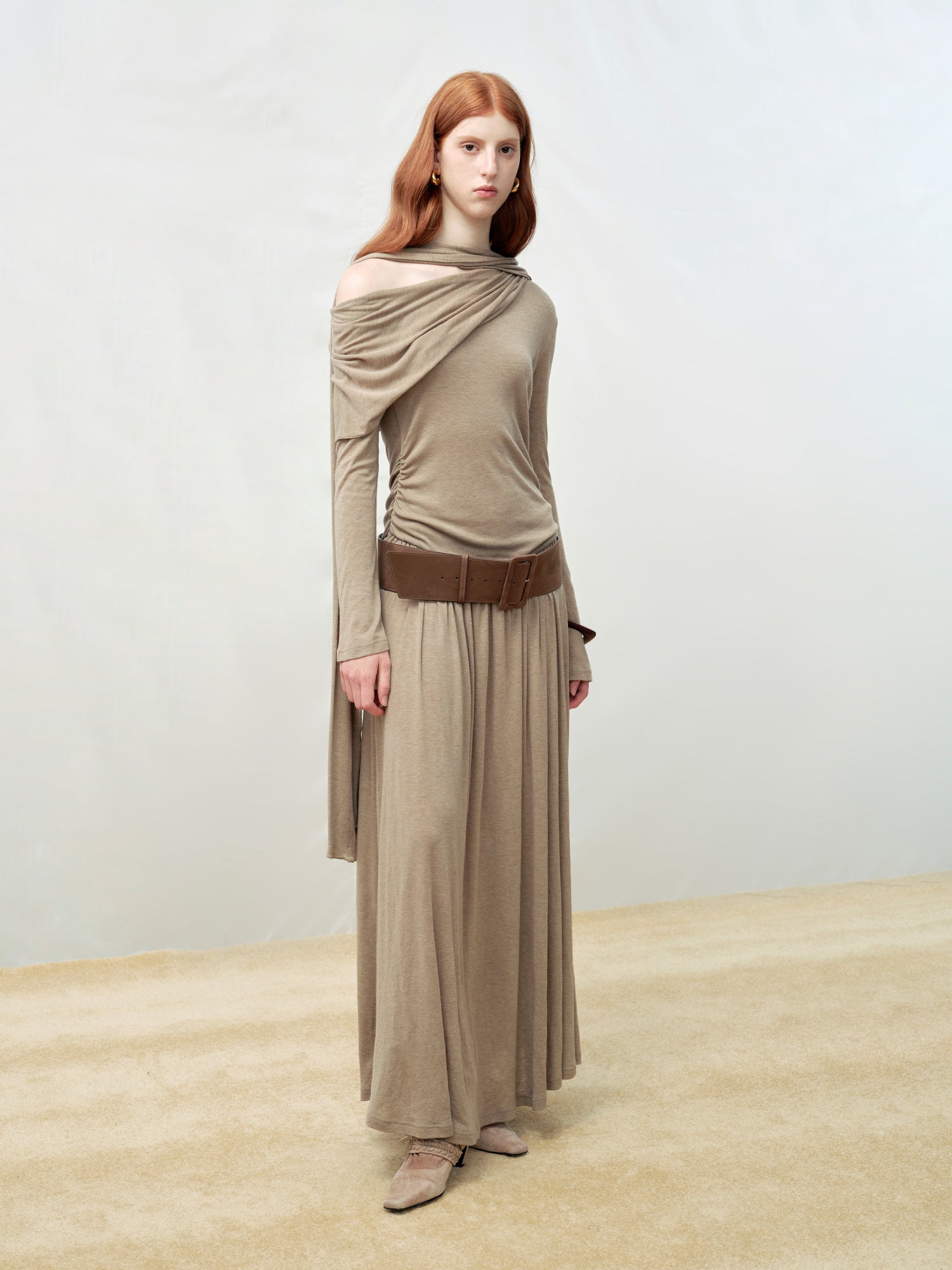 Asymmetrical Shoulder Cut-Out Ribbon Knit Dress