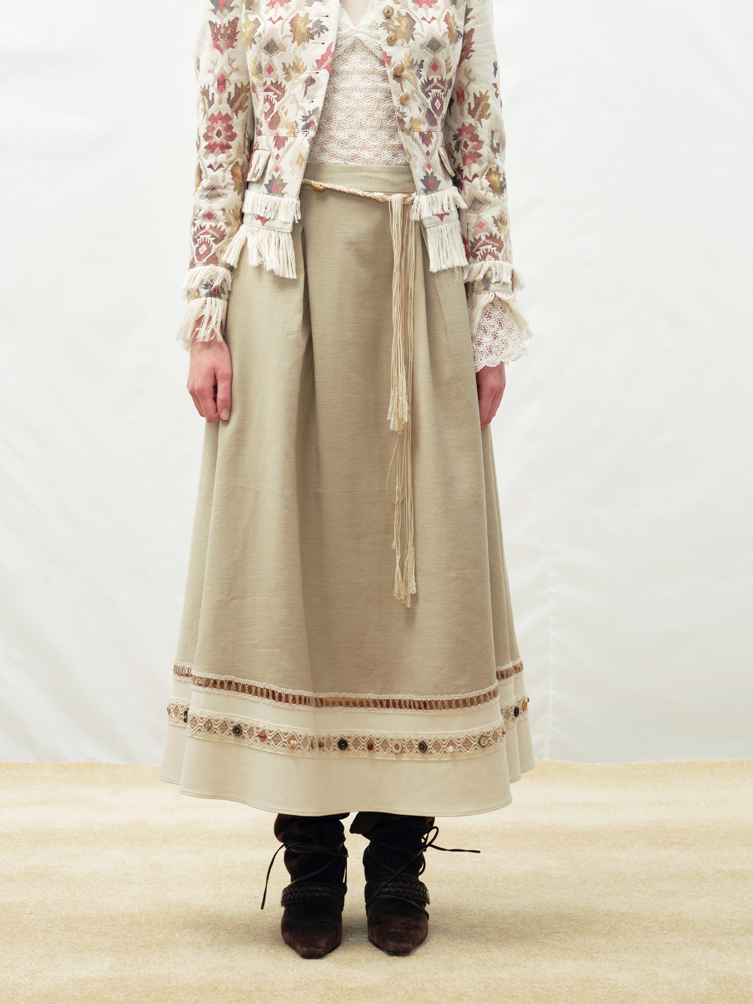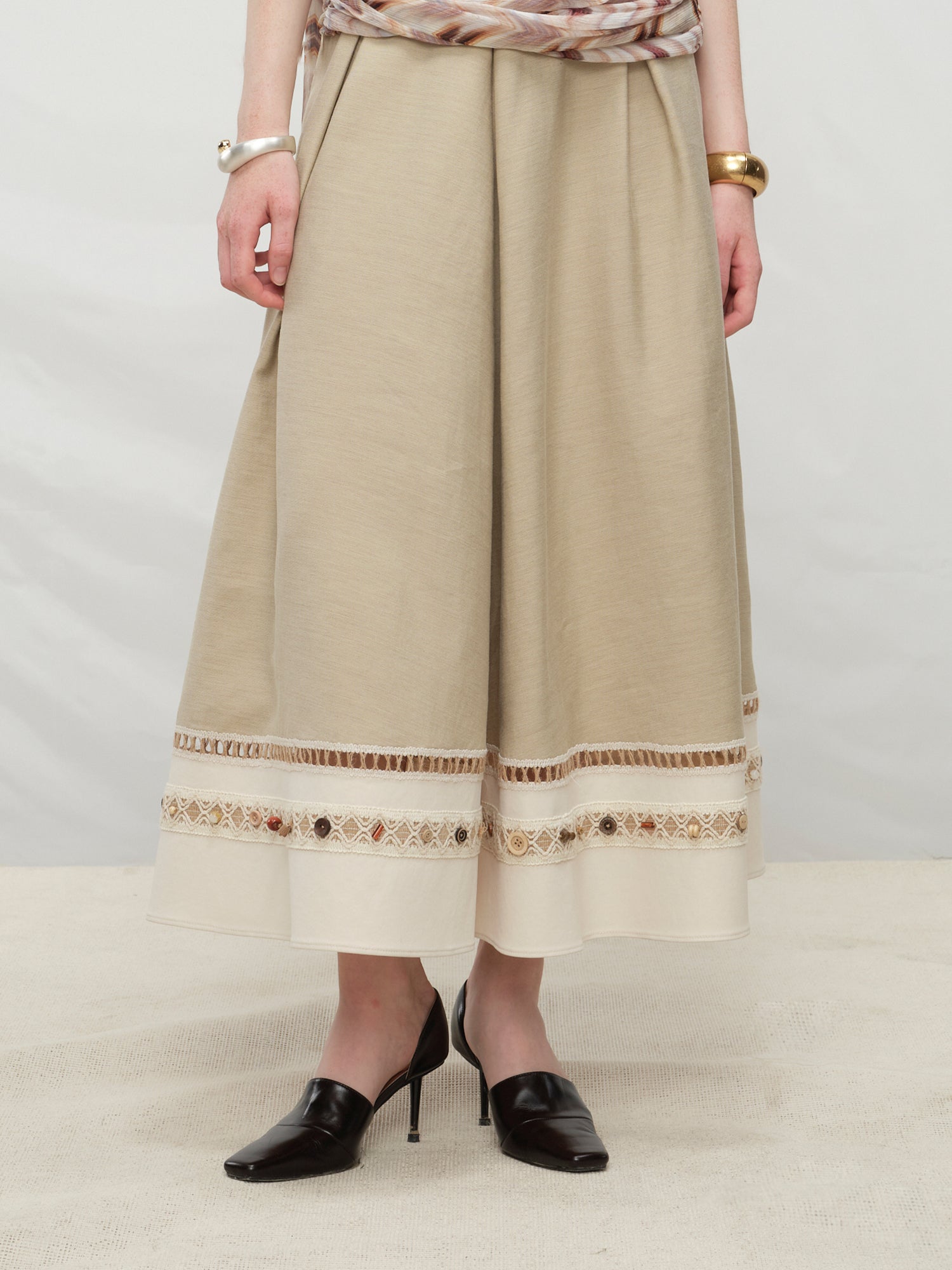 Beaded Ribbon Patchwork Skirt