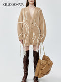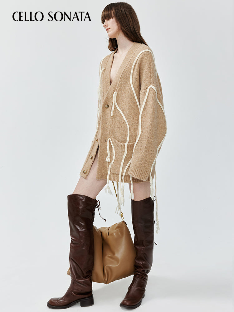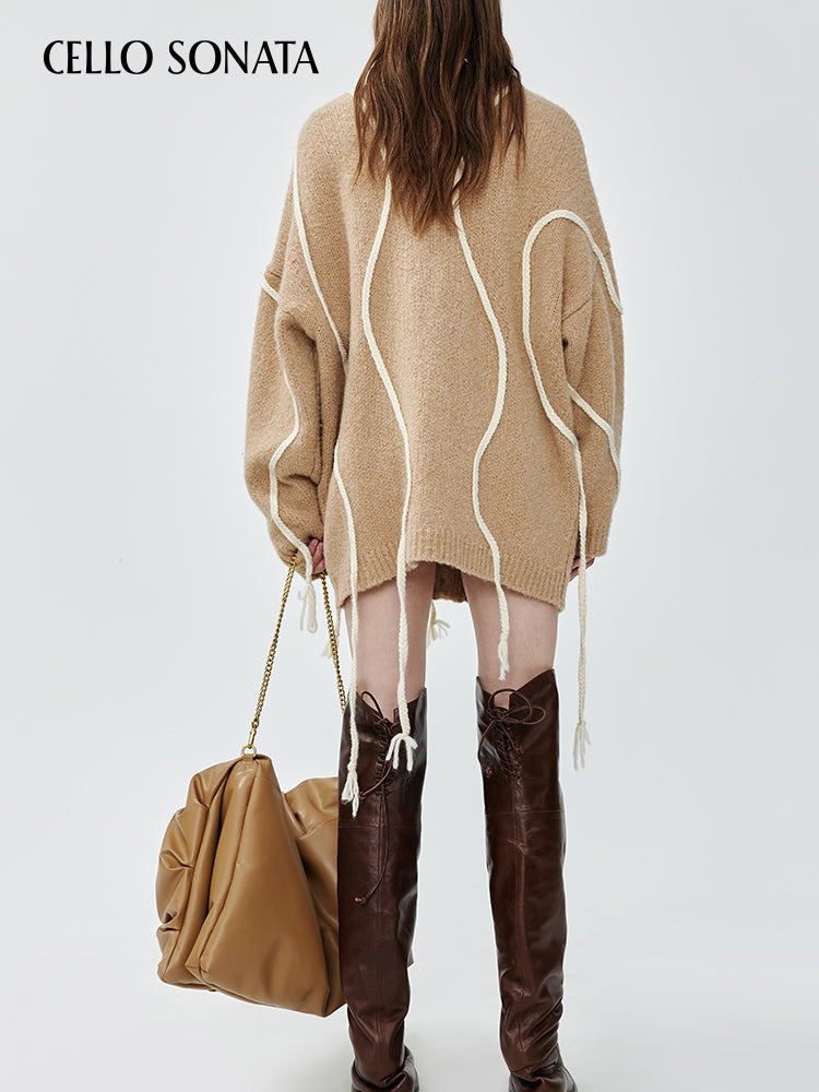 The exclusive development of hand-woven irregular lines decoration, fringe freely scattered, minimalist details, loose version, highlighting the modern elegant style simple and crisp.