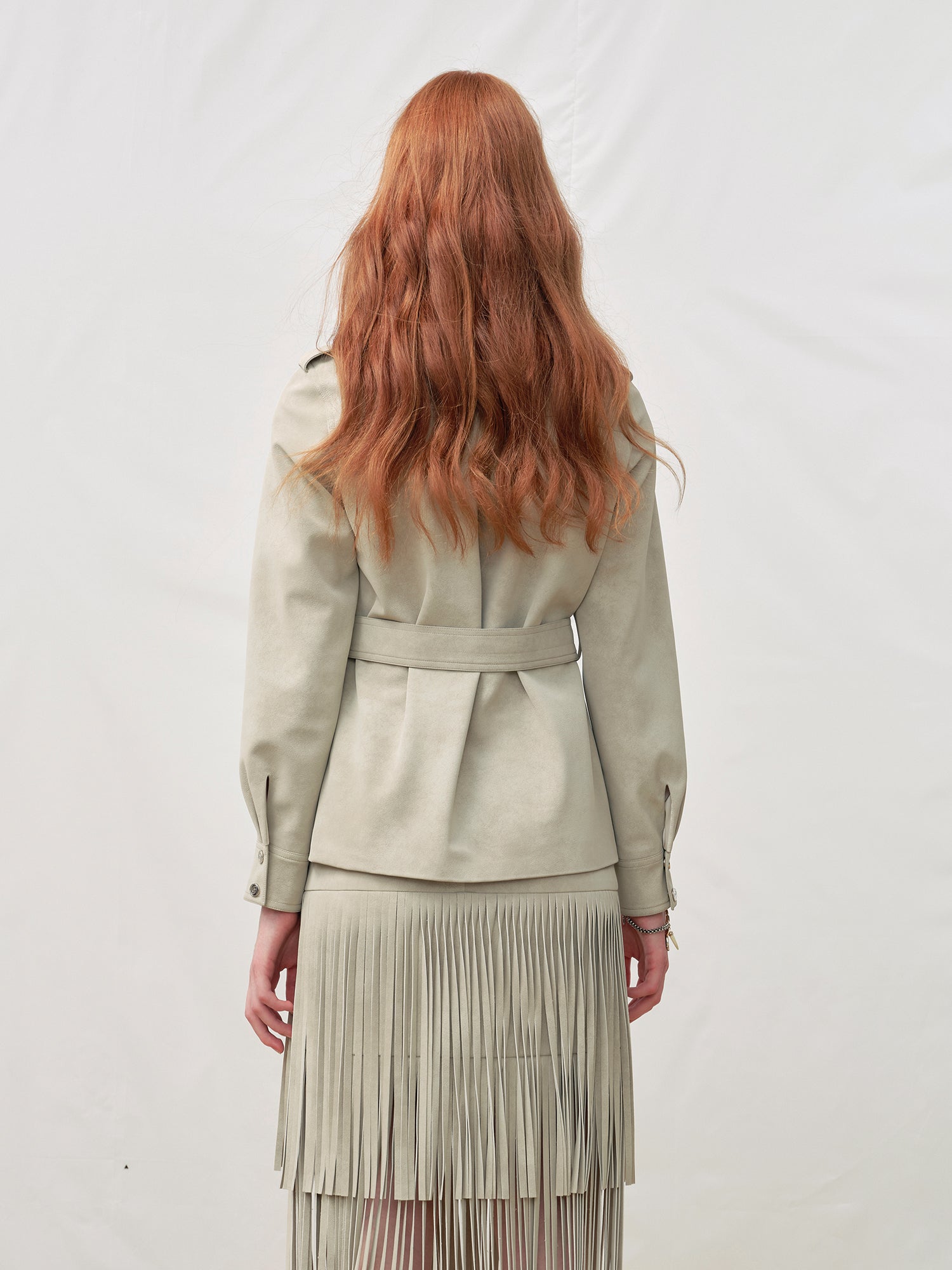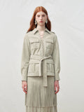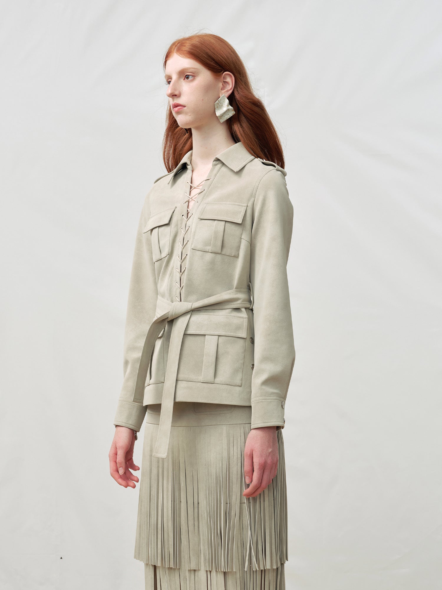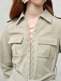 Multi-Pocket Faux Suede Lace-Up Utility Shirt