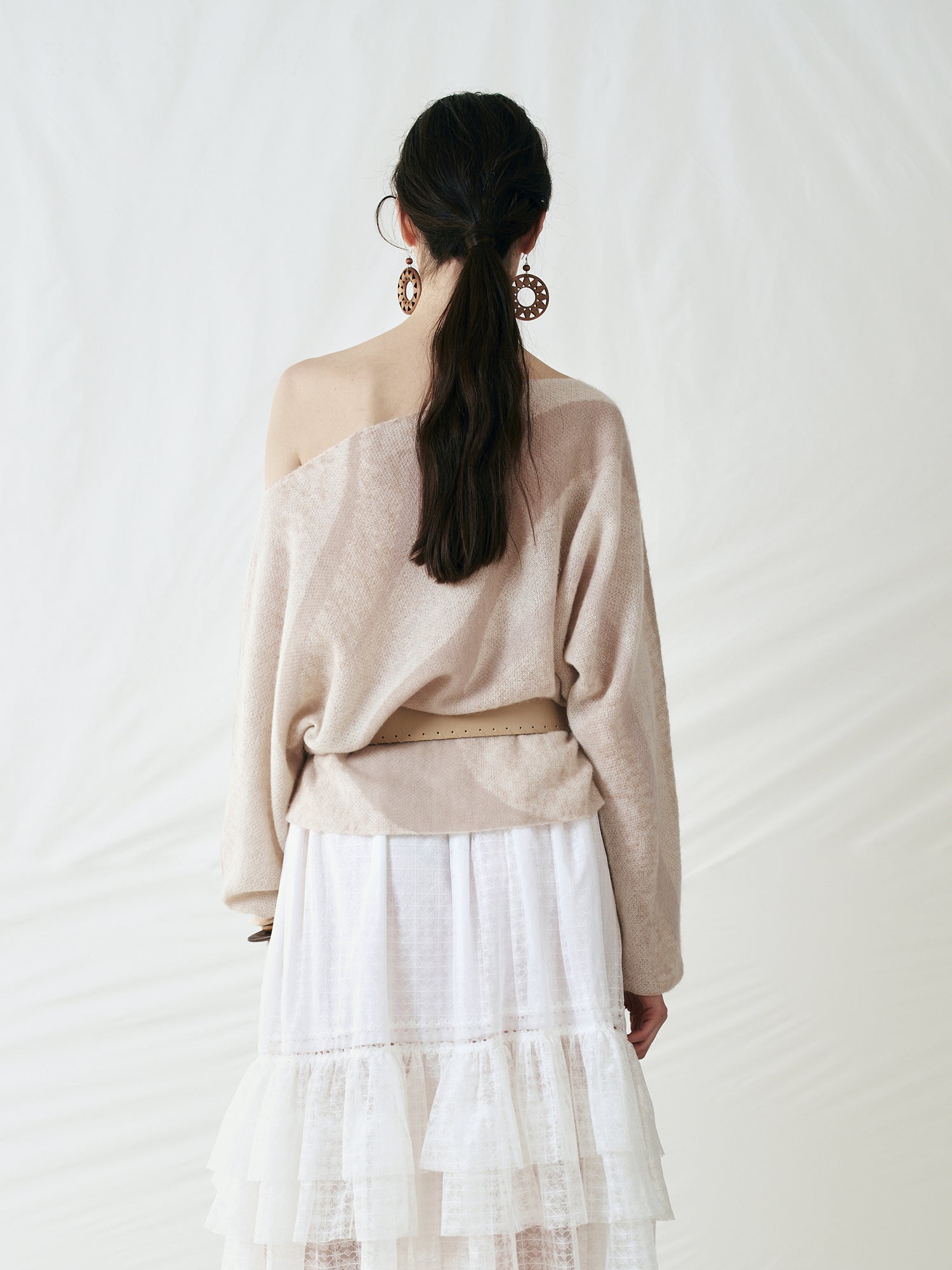 Original Ripple Asymmetrical Shoulder Batwing Sleeve Top