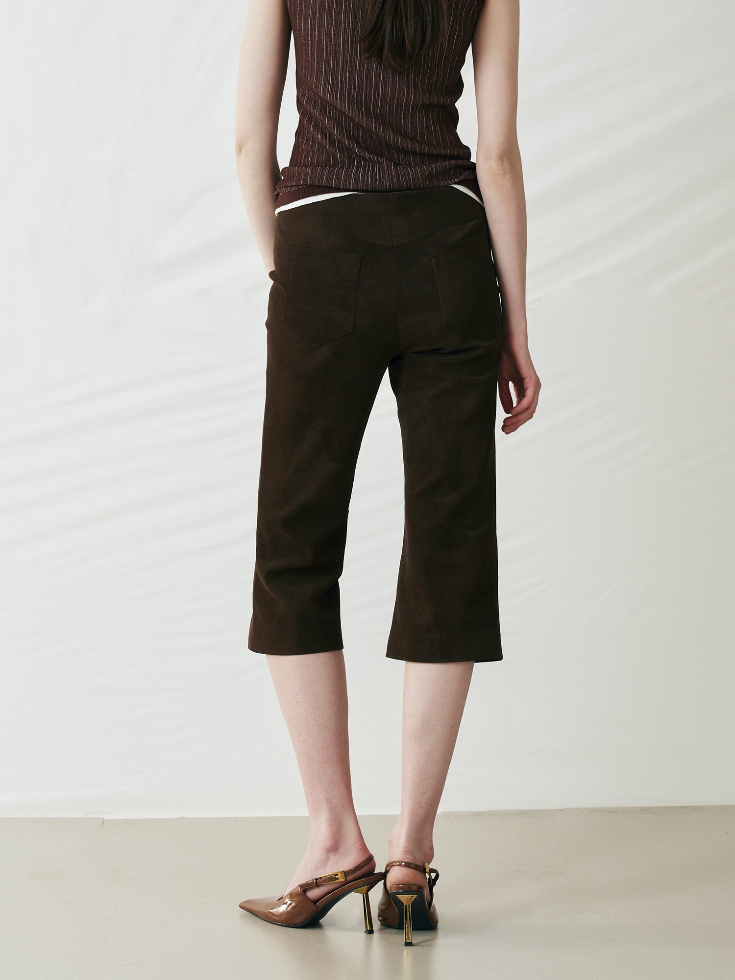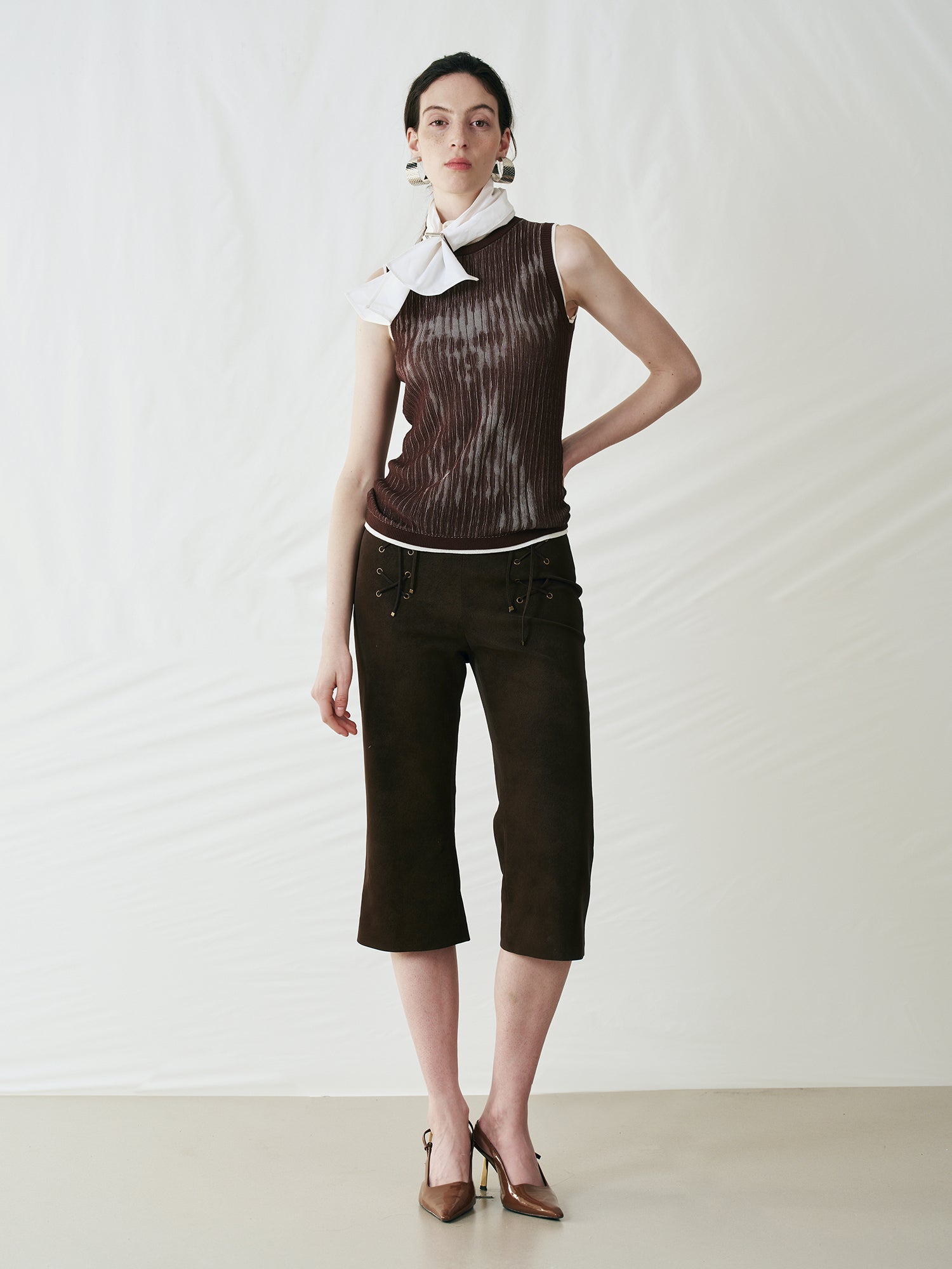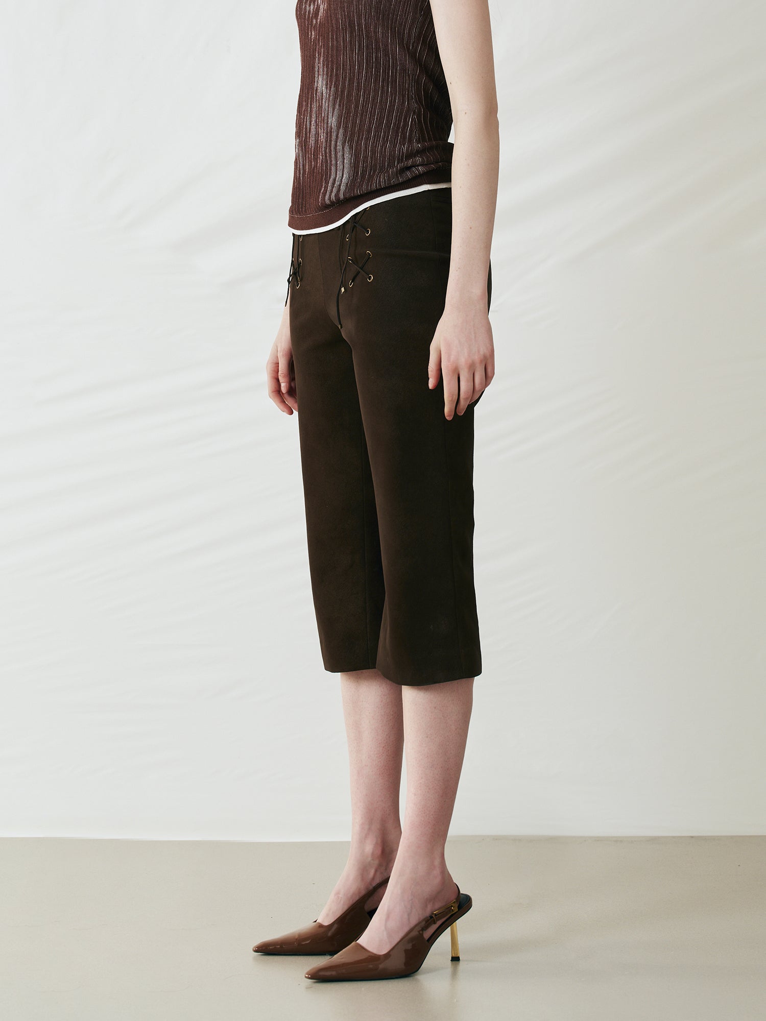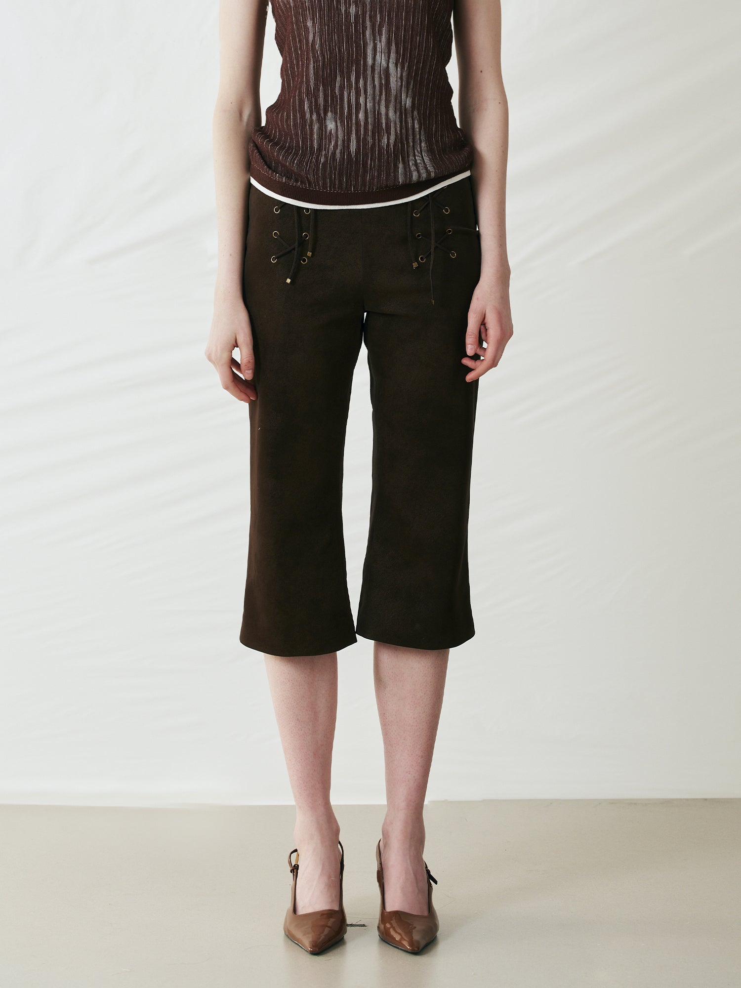 Perforated Lace-Up Cropped Leather Pants