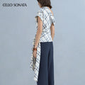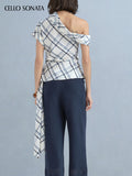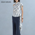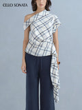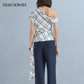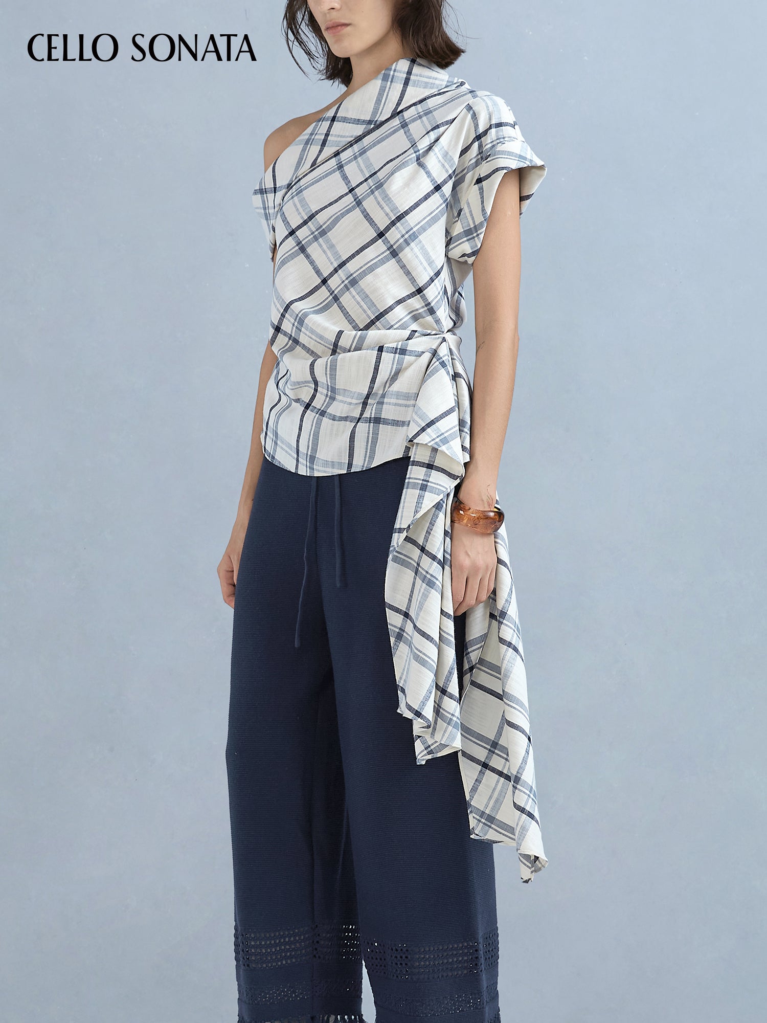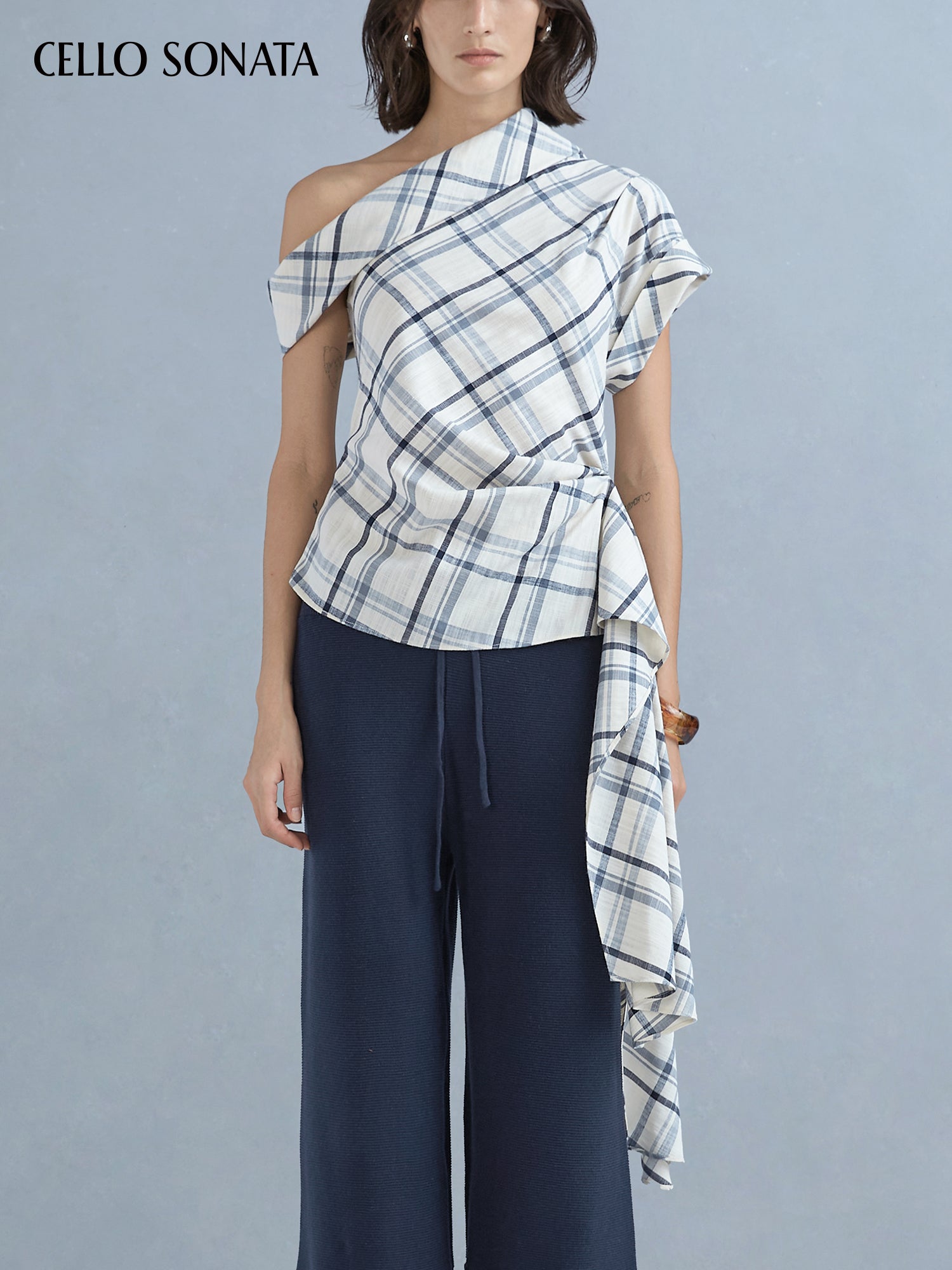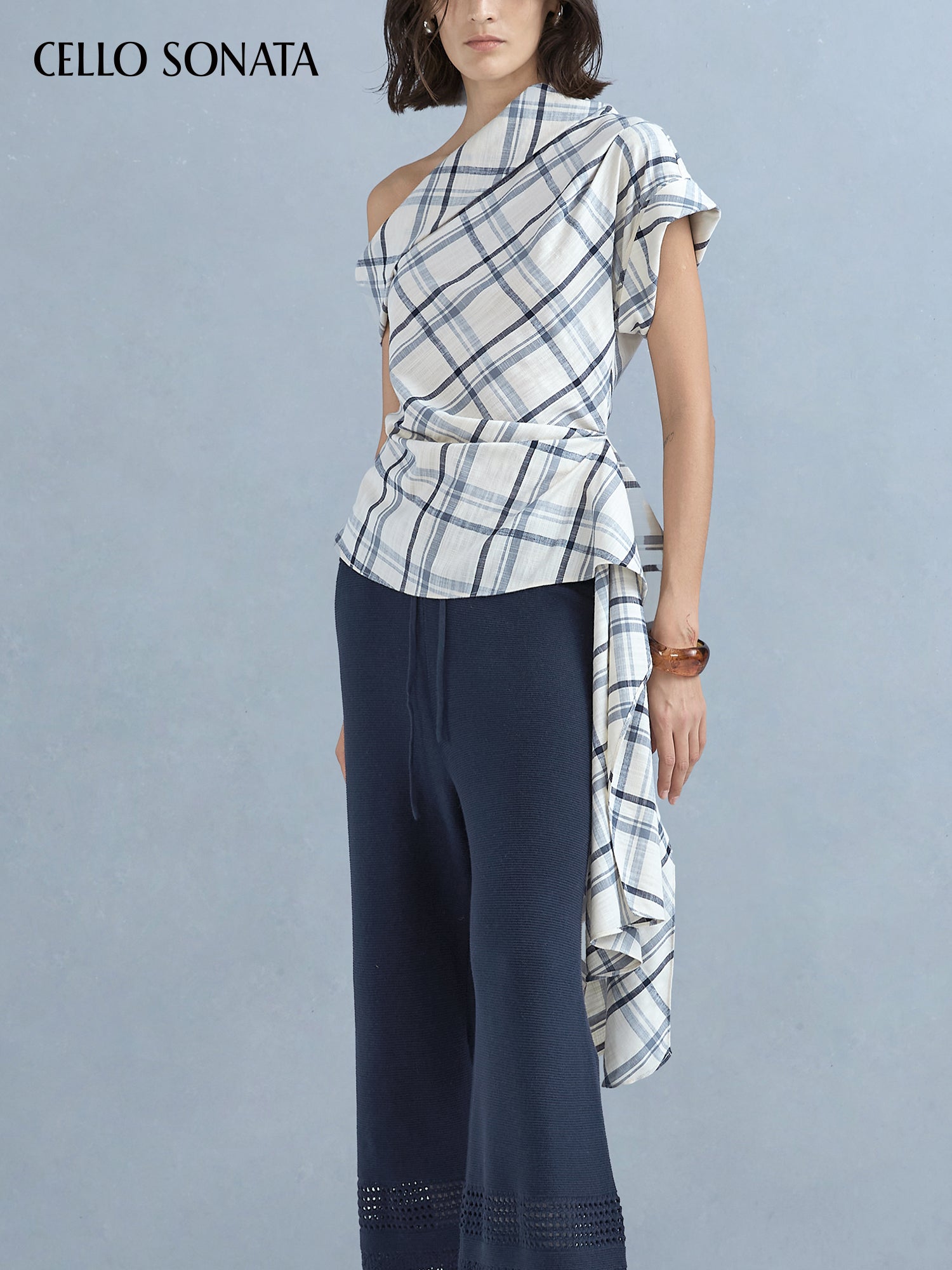 Three-dimensional tailoring and an off-shoulder neckline beautifully shape the neck. A single-side waist pleat defines the silhouette, while flowing ribbons add graceful, elegant movement.