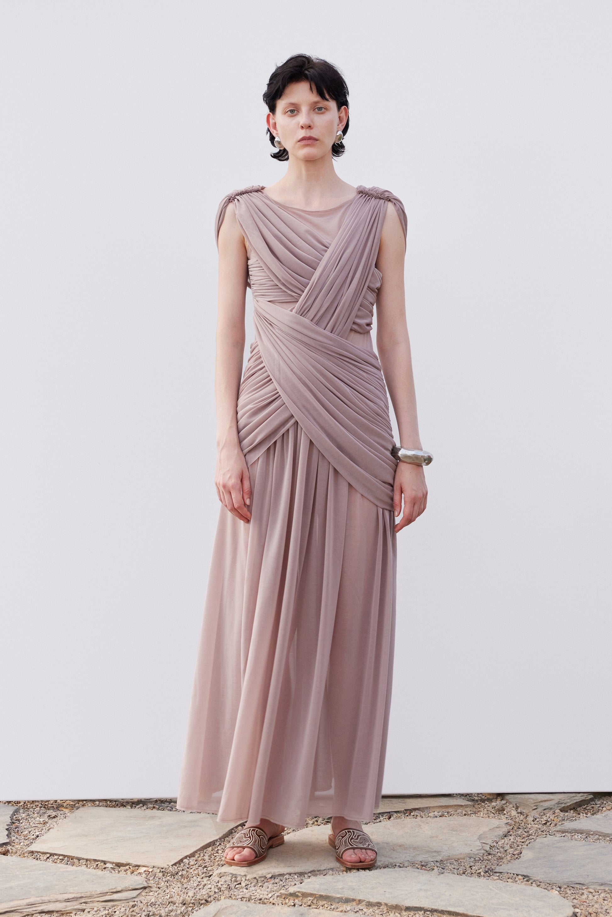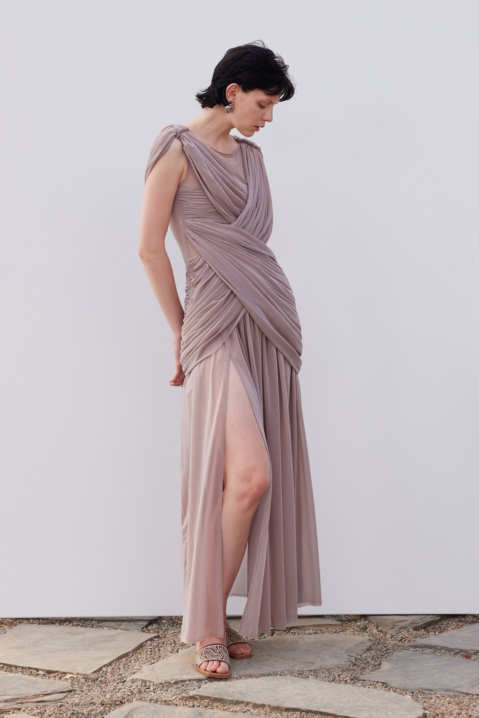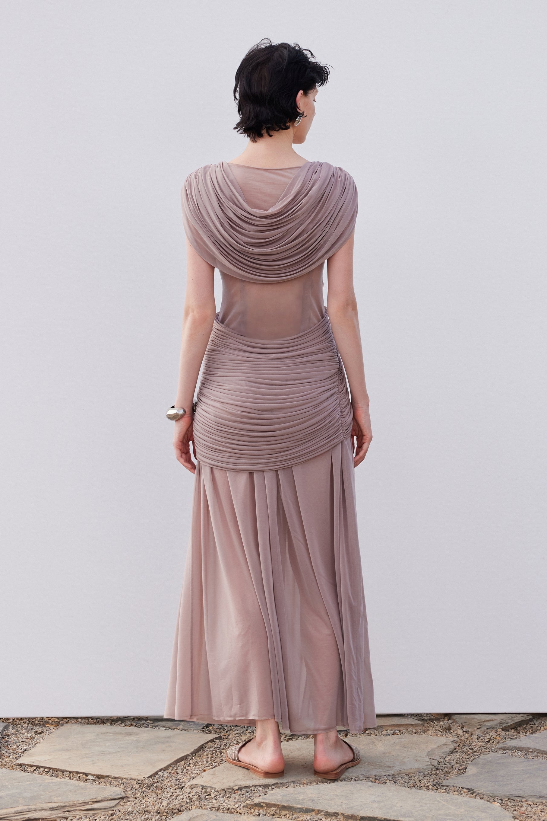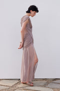 Using ultra-thin knitted fabric imported from Japan, it is light, comfortable and elastic. The pattern cutting and the design of the pleated volume are very delicate. The translucent feeling of some areas is very sexy, and it is a light dress that is very suitable for important occasions.