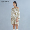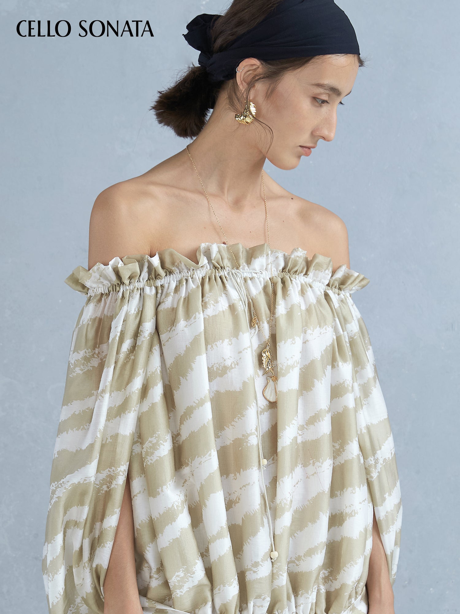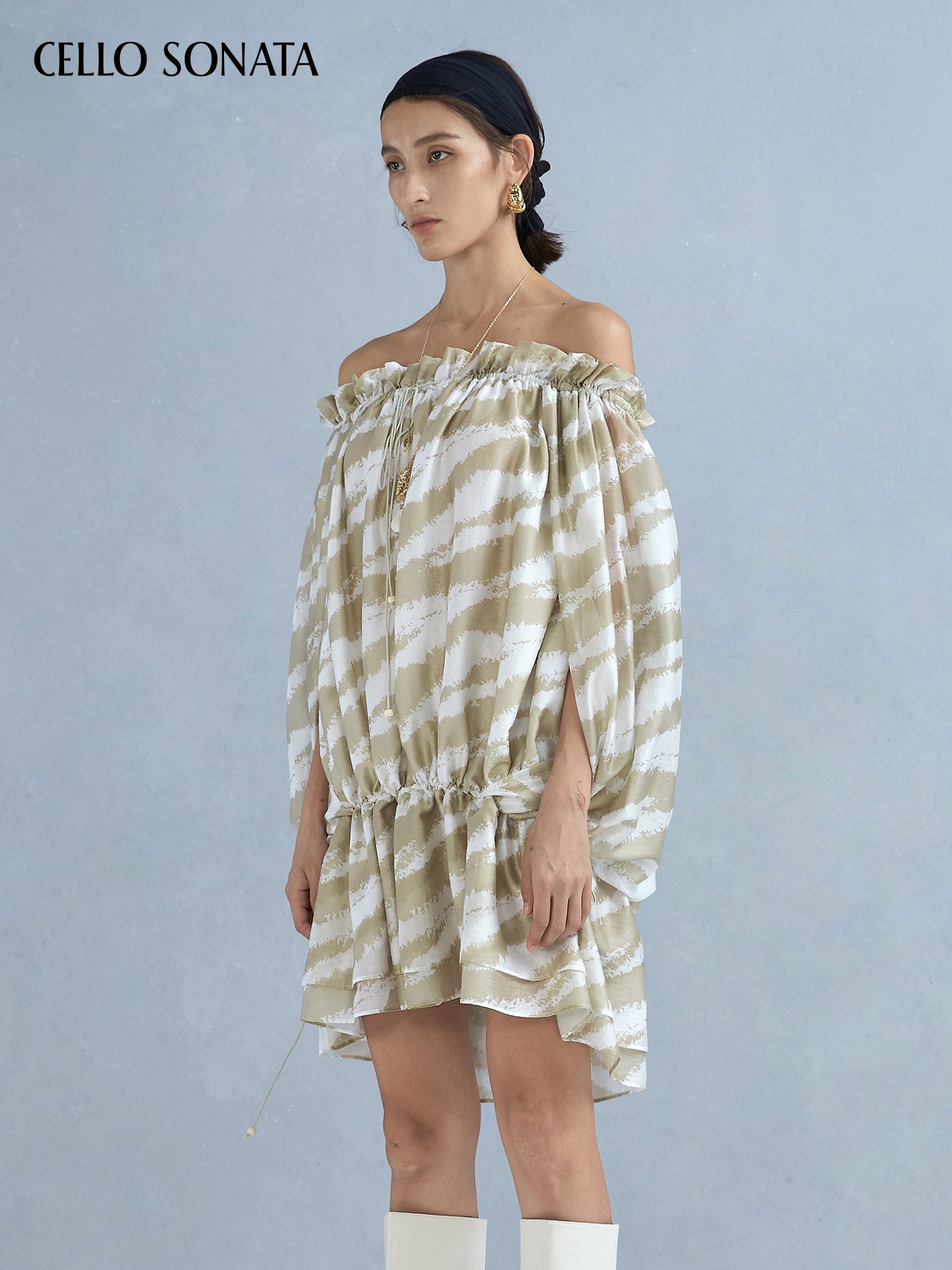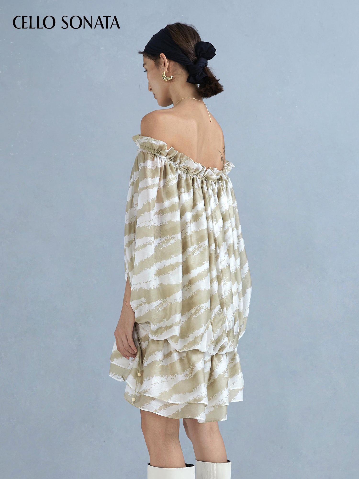 The one-shoulder cut highlights elegant neckline curves, while the cropped zebra print adds playful energy. Waist pleats offer both comfort and a flattering, layered silhouette.