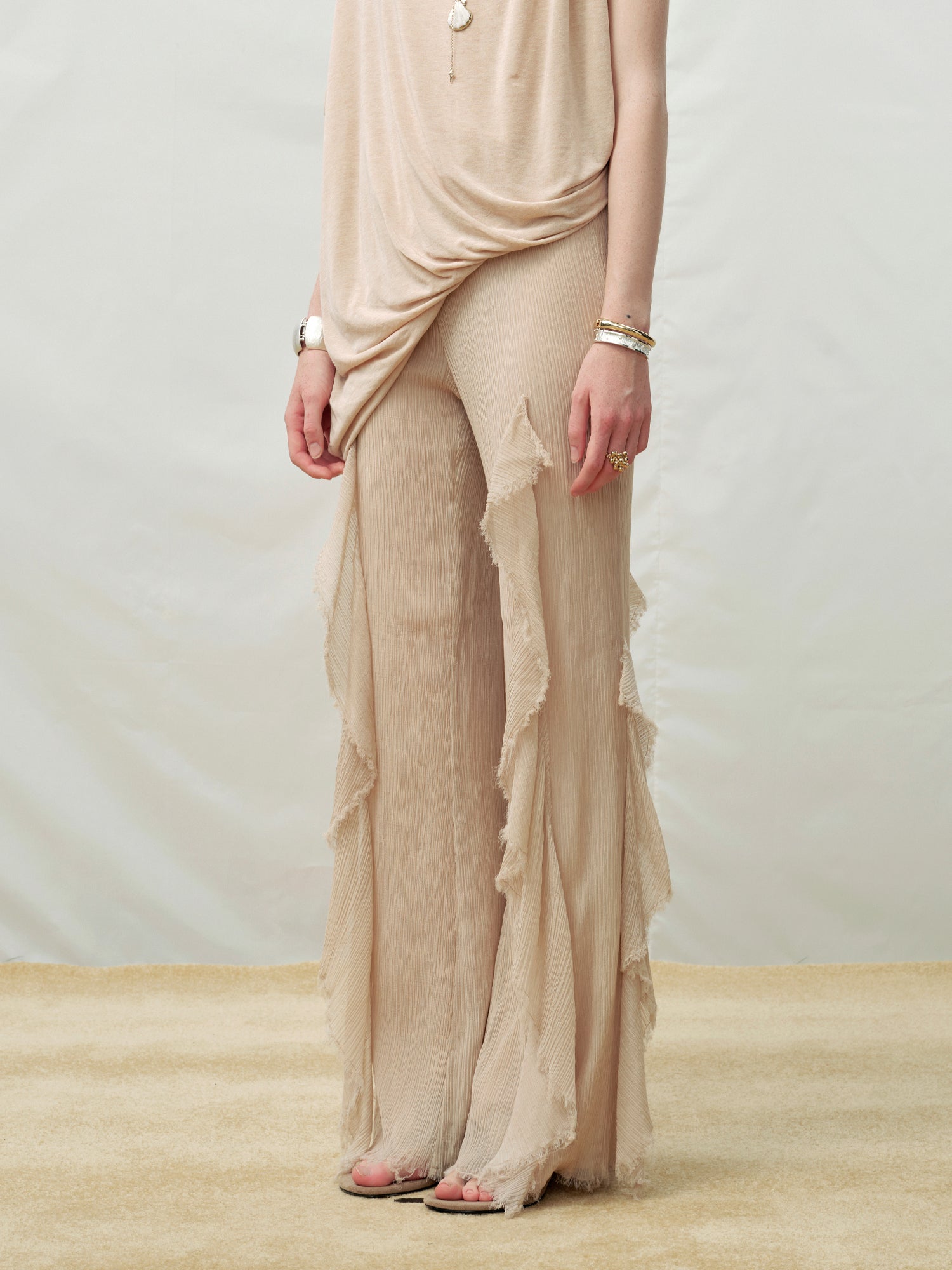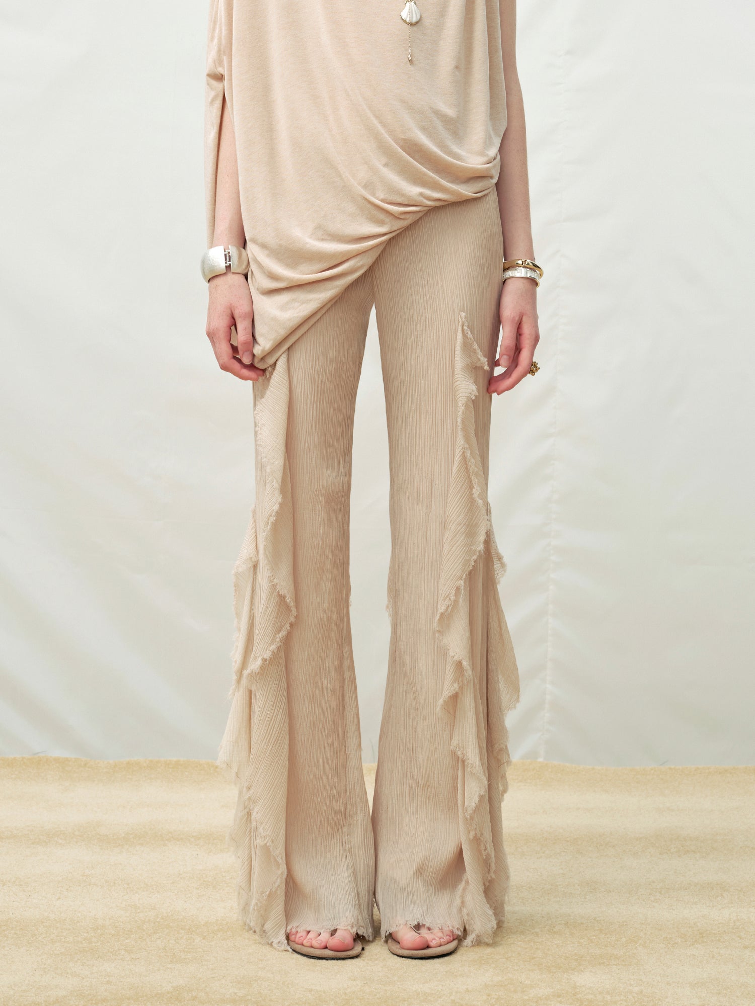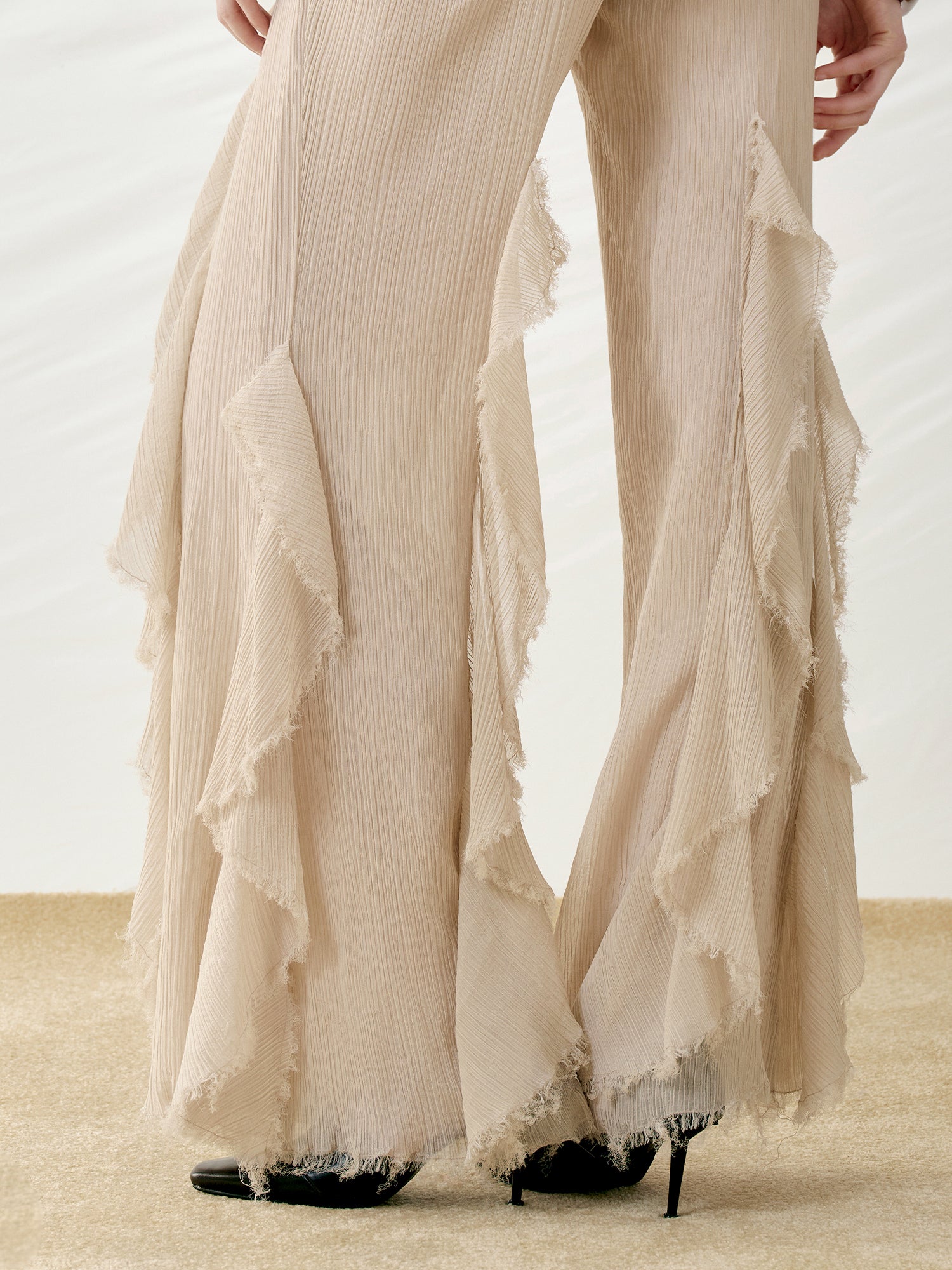 Ruffle Raw-edge Flared Pants