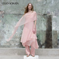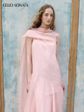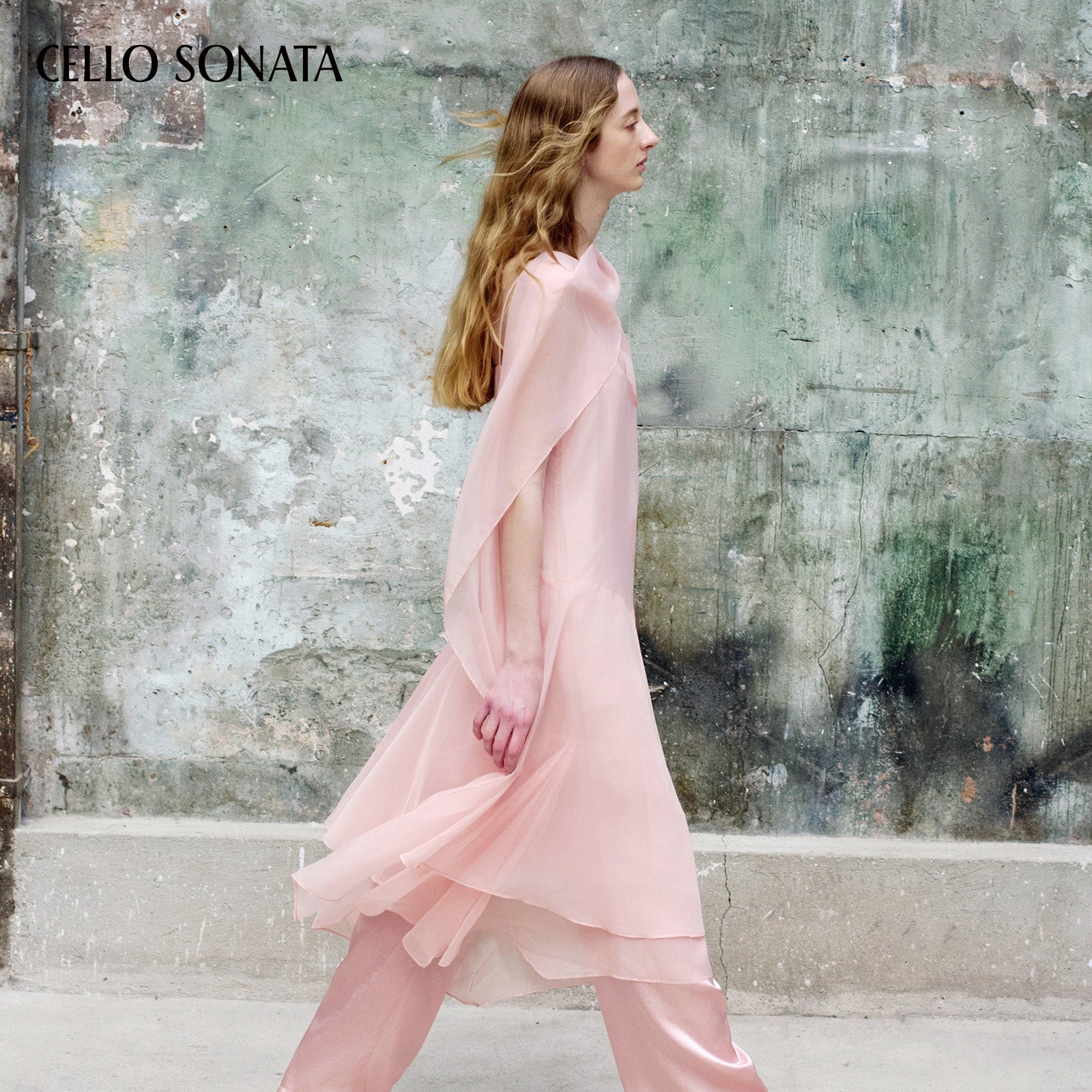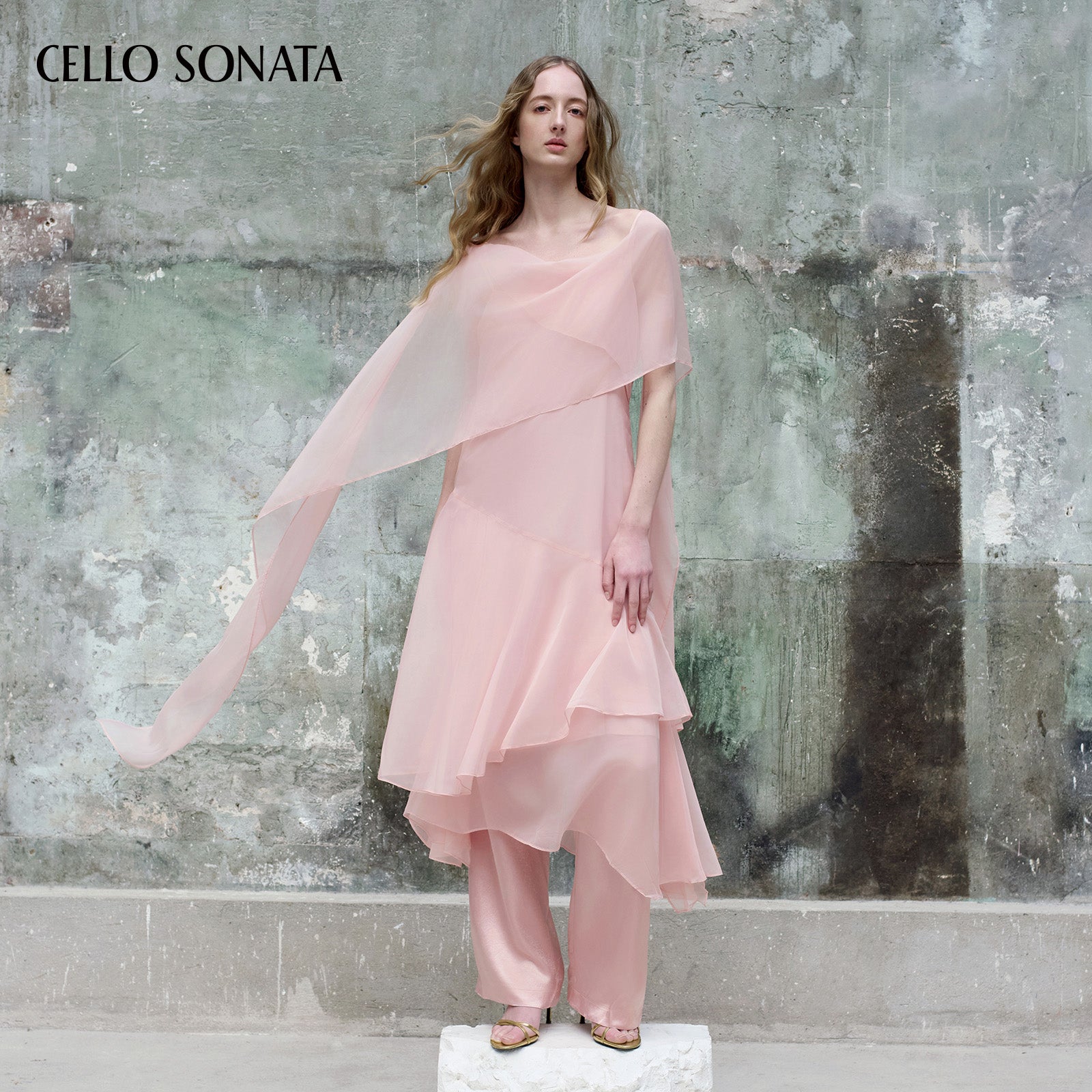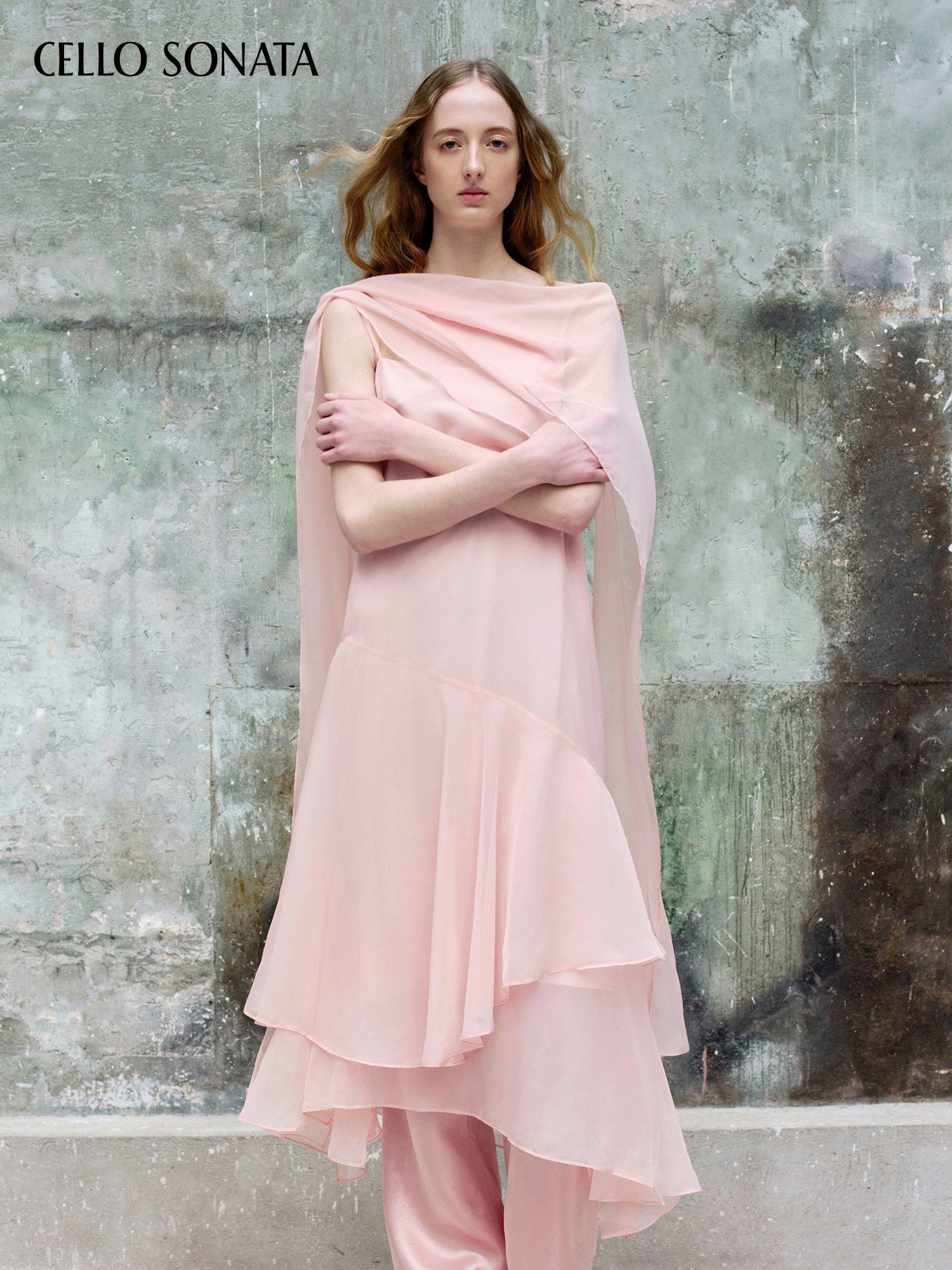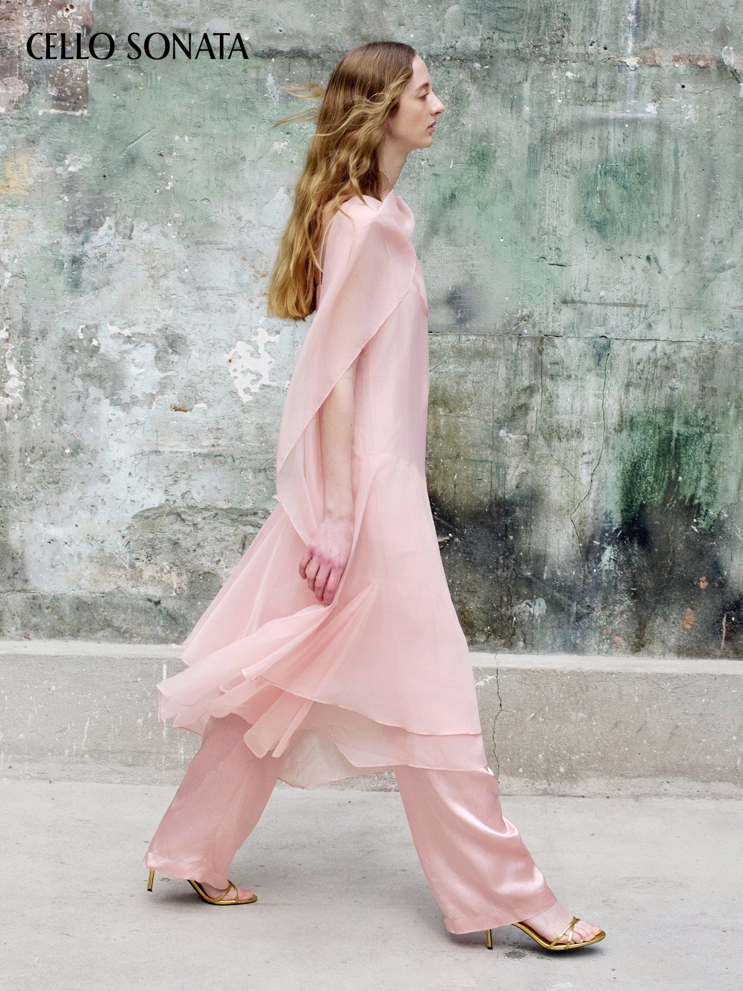 Elegant ribbon details and sheer tulle offer layered sophistication, while soft pink tones infuse a youthful, romantic mood.