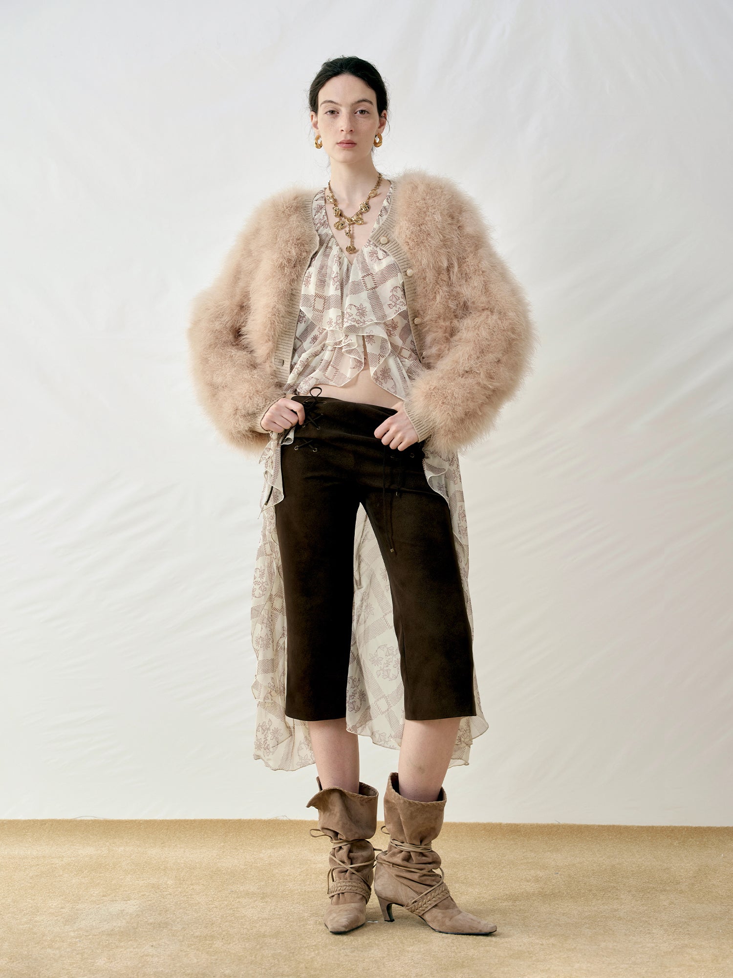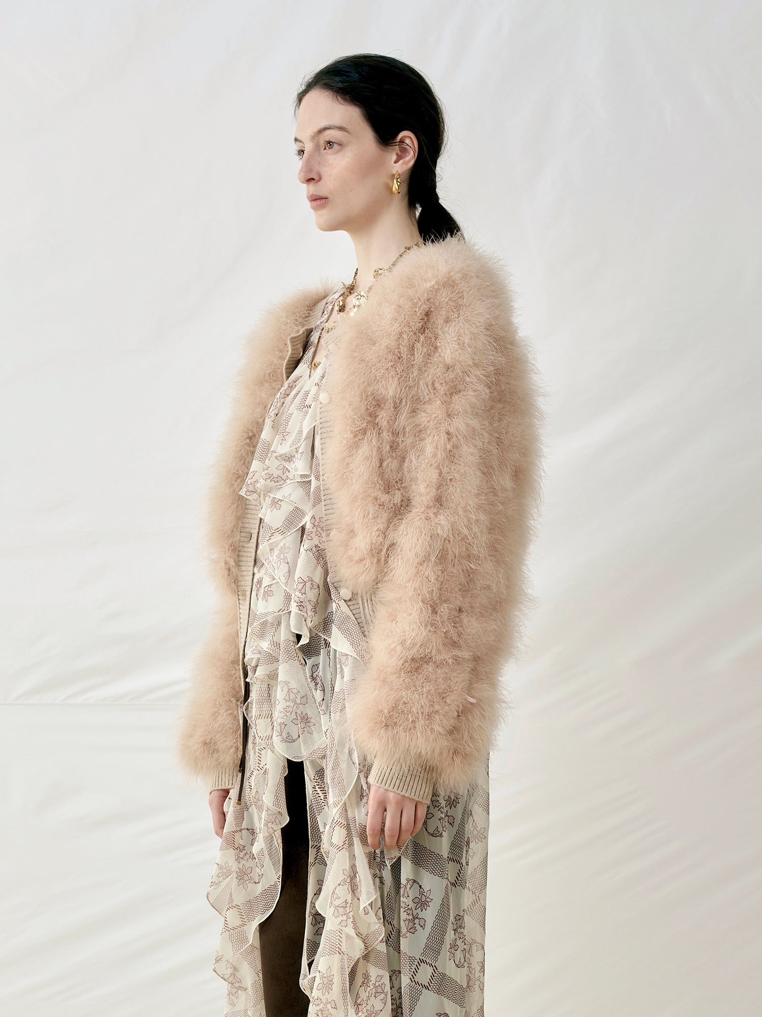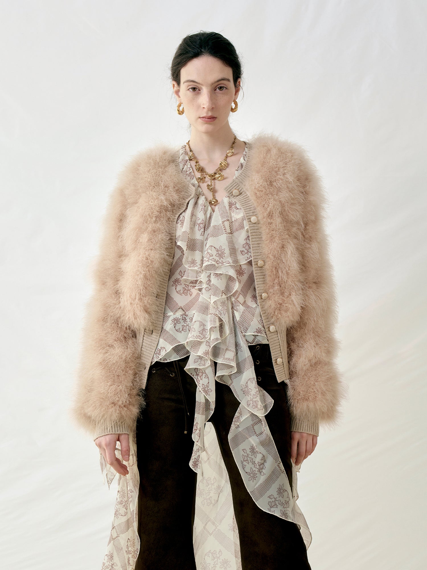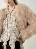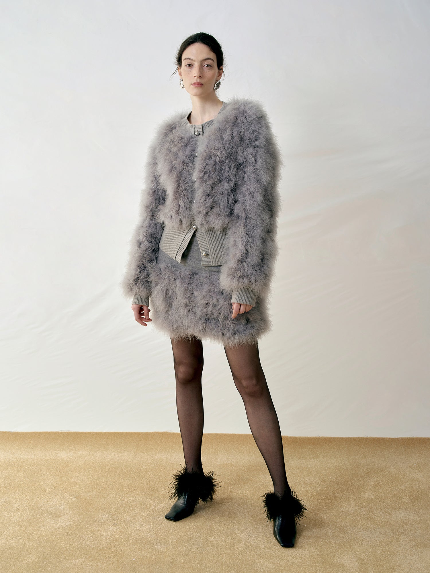 Turkey Feather Patchwork Wool Ribbed Knit Fur Jacket