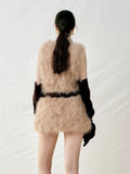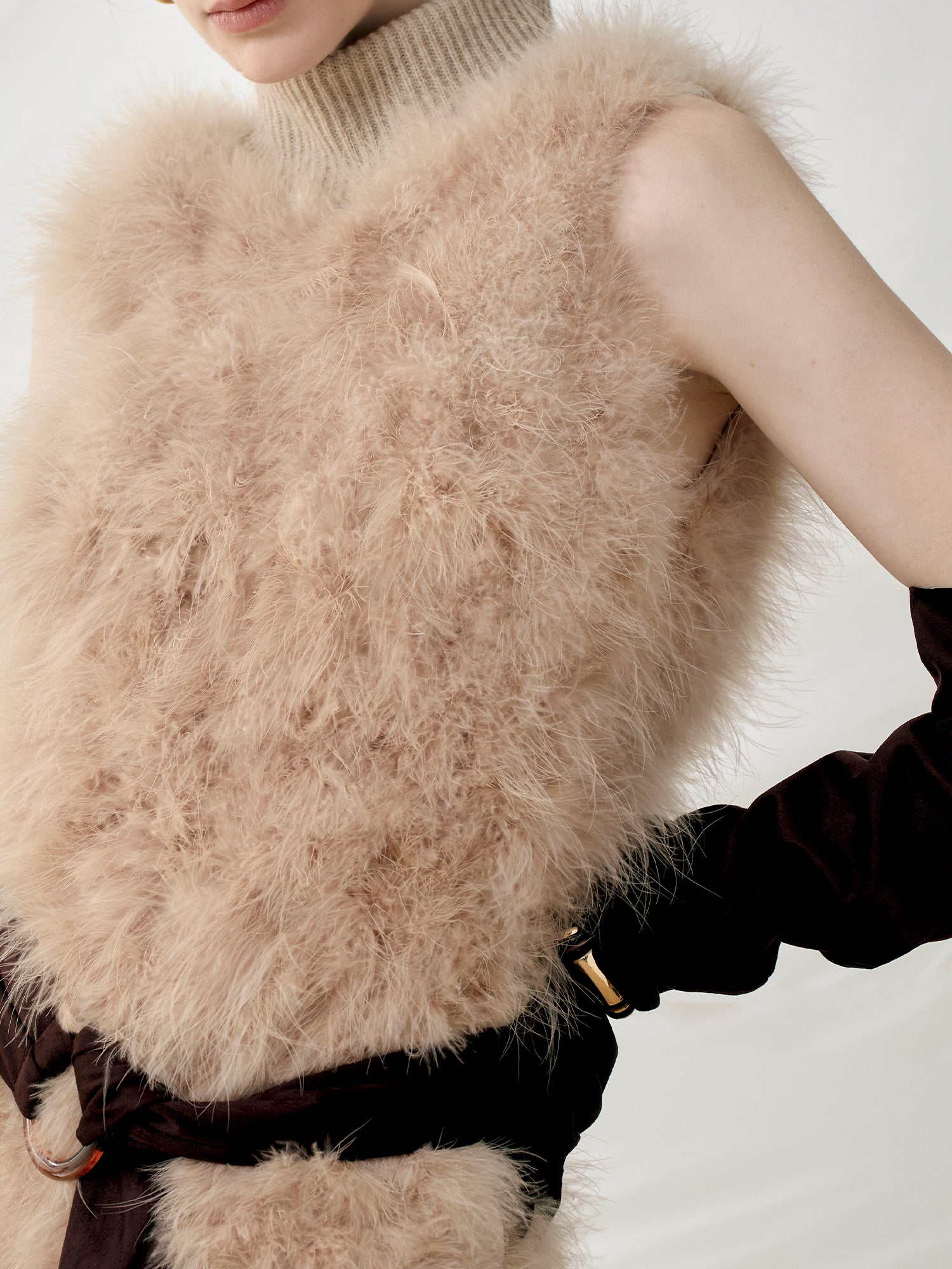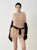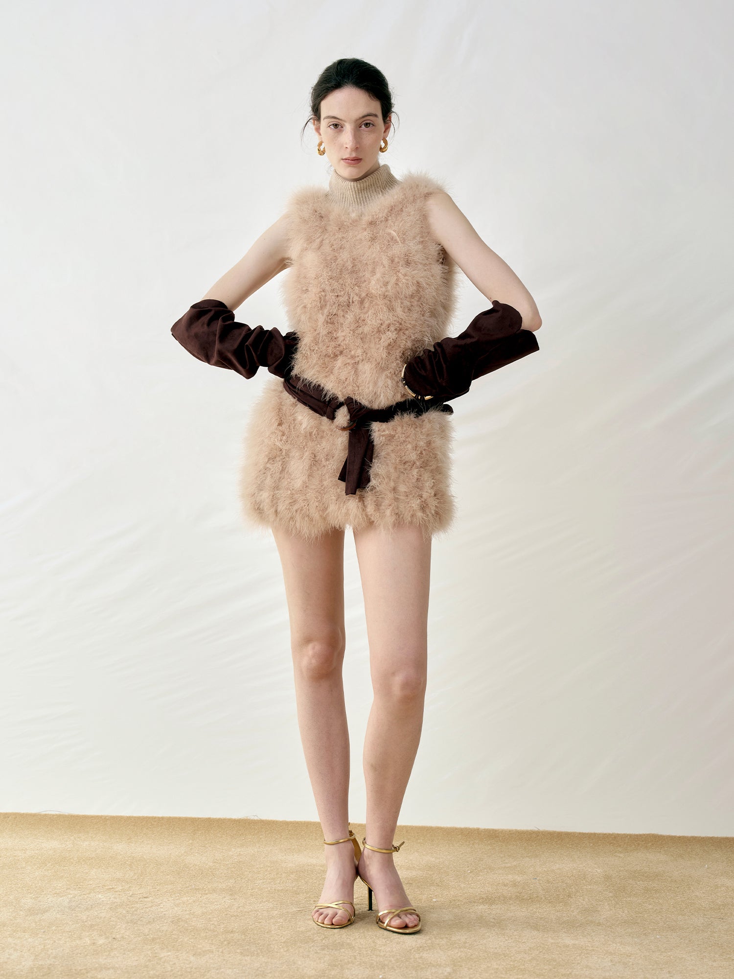 Turkey Feather Ribbed Neck Sleeveless Mini Dress