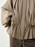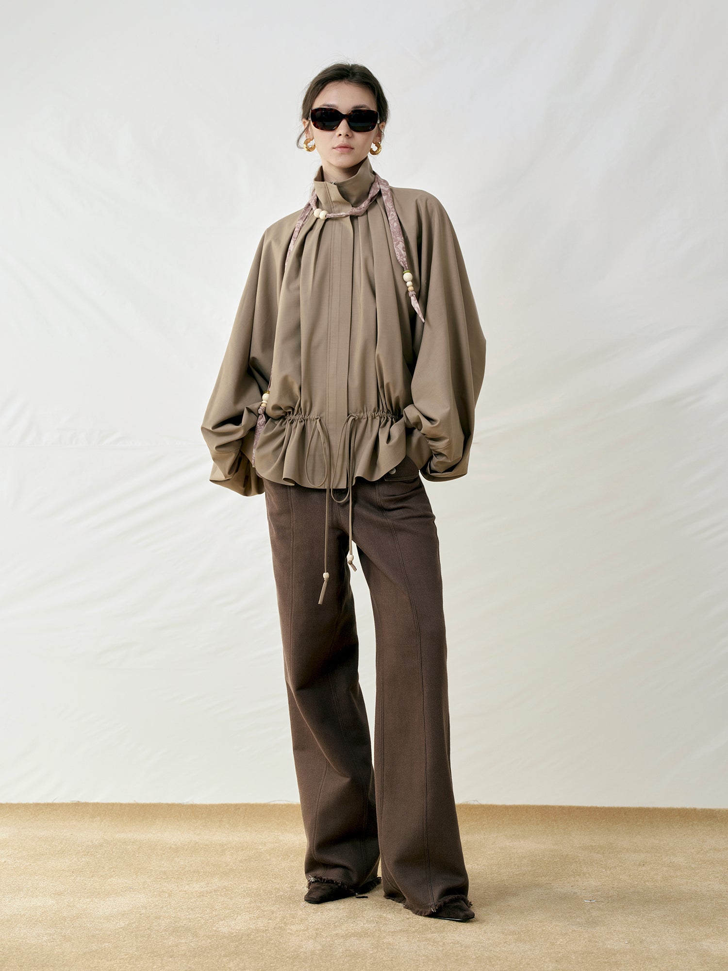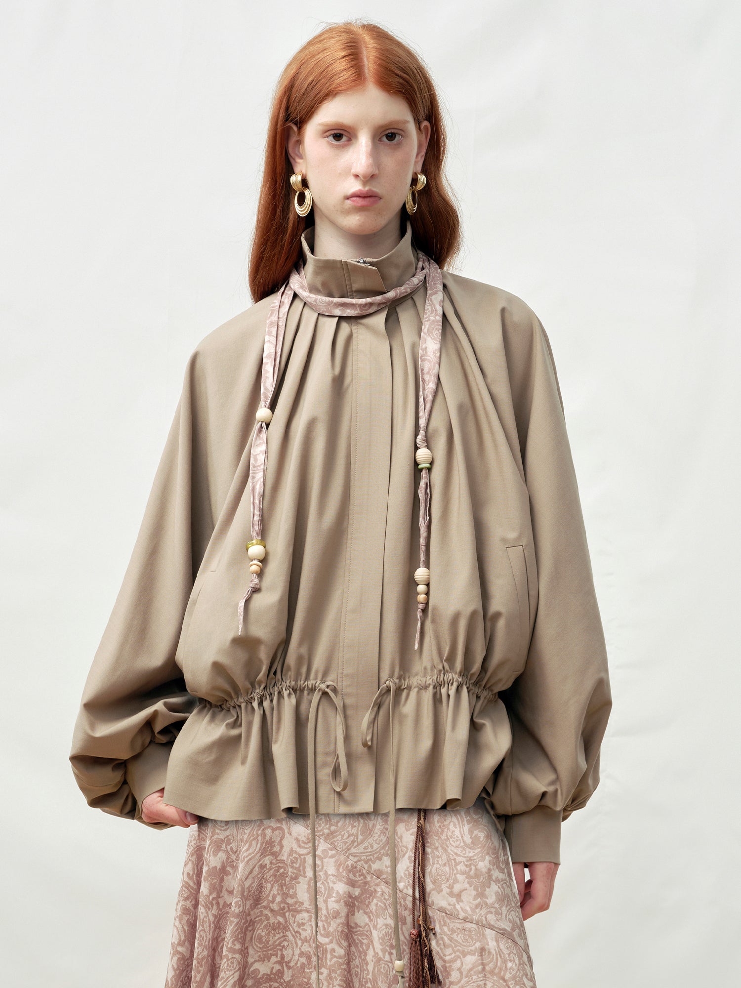 Wooden Bead Scarf Waist-Cinched Jacket